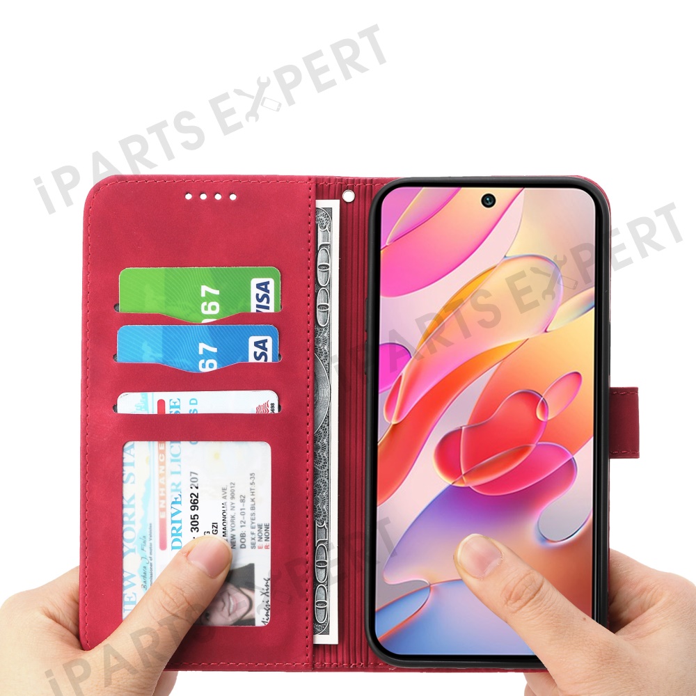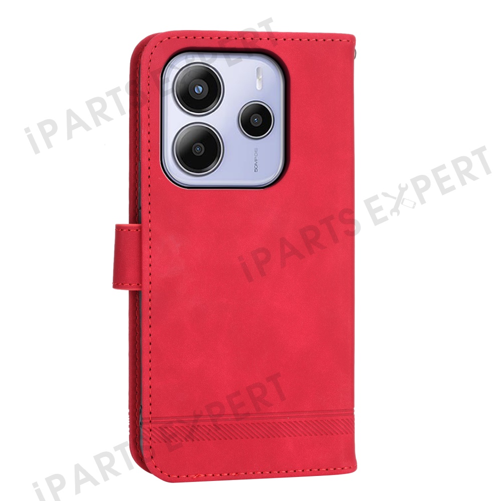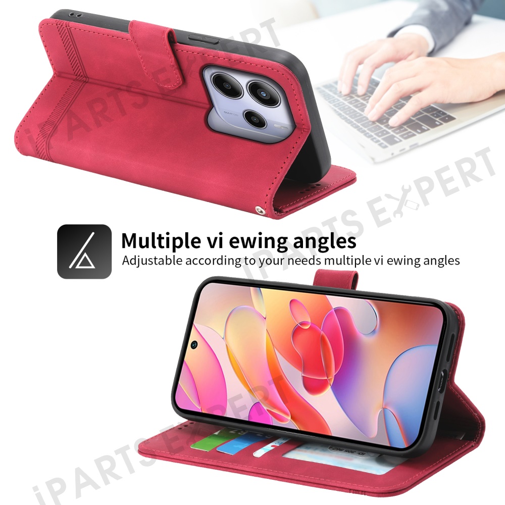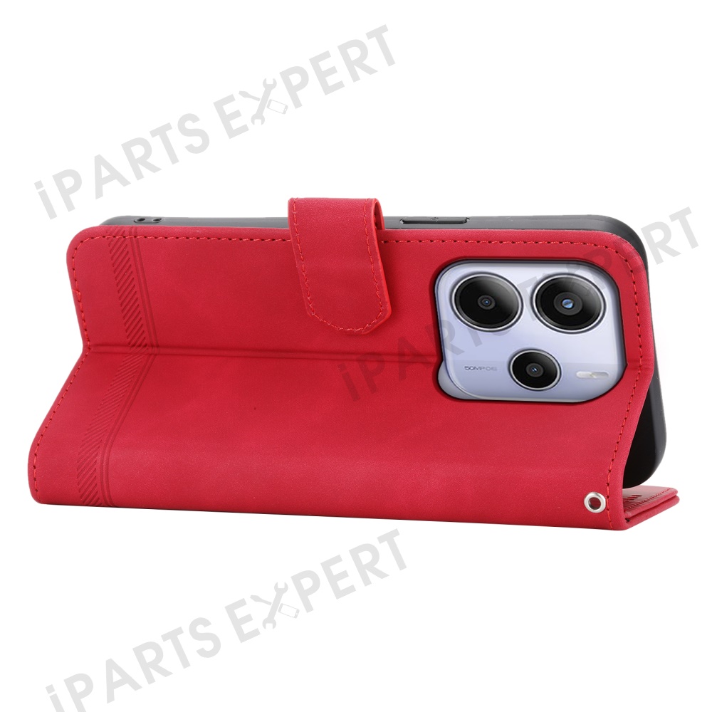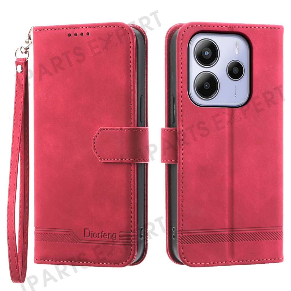 DIERFENG DF-03 For Xiaomi Redmi Note 14 4G (163.25mm) Leather Case Lines Imprint Wallet Phone Cover - Red