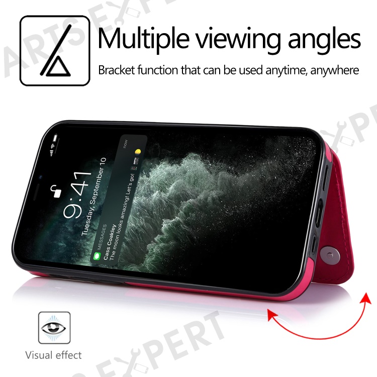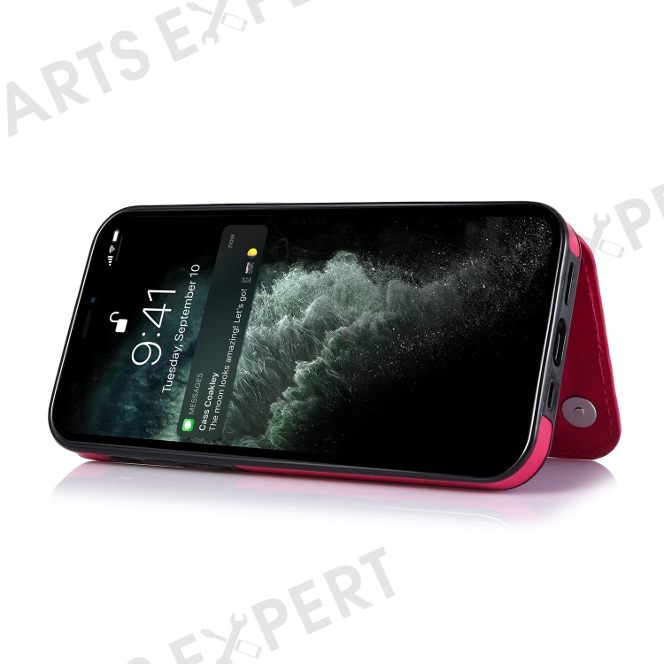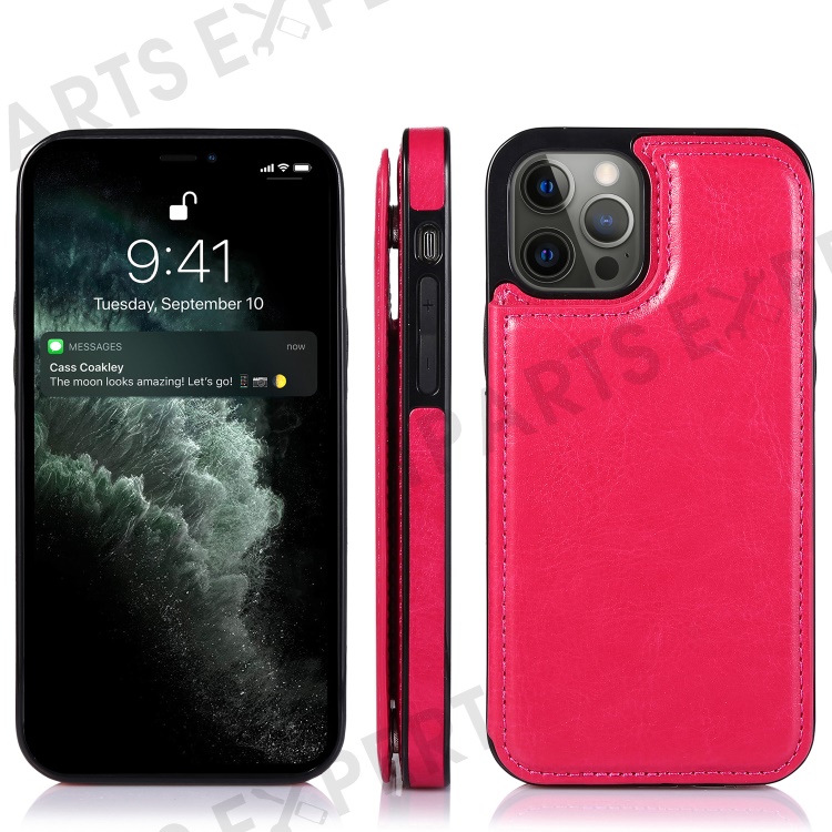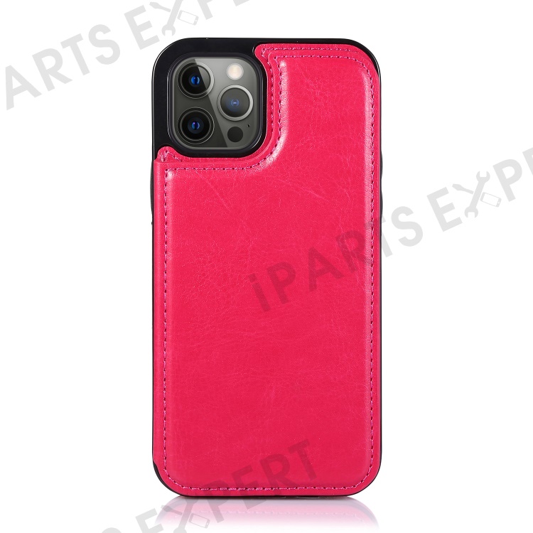 Double Magnetic Buttons PU Leather Coated TPU Phone Case Crazy Horse Texture Kickstand Card Holder Scratch-resistant Phone Cover for iPhone 13 Pro Max 6.7 inch - Rose