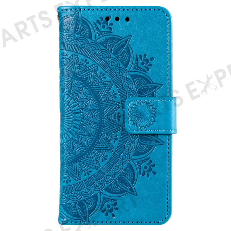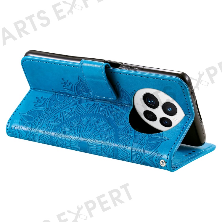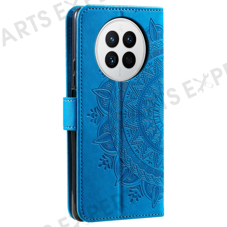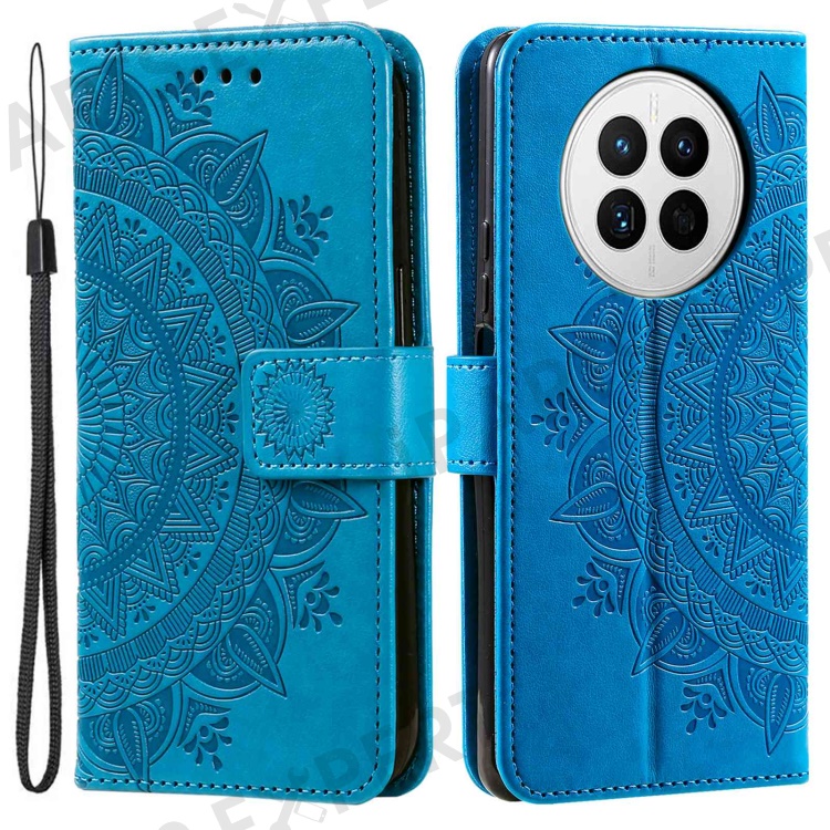 Drop-proof Phone Case For Huawei Mate 50 4G, Mandala Flower Pattern Imprinted PU Leather Anti-wear Flip Wallet Stand Cover - Blue