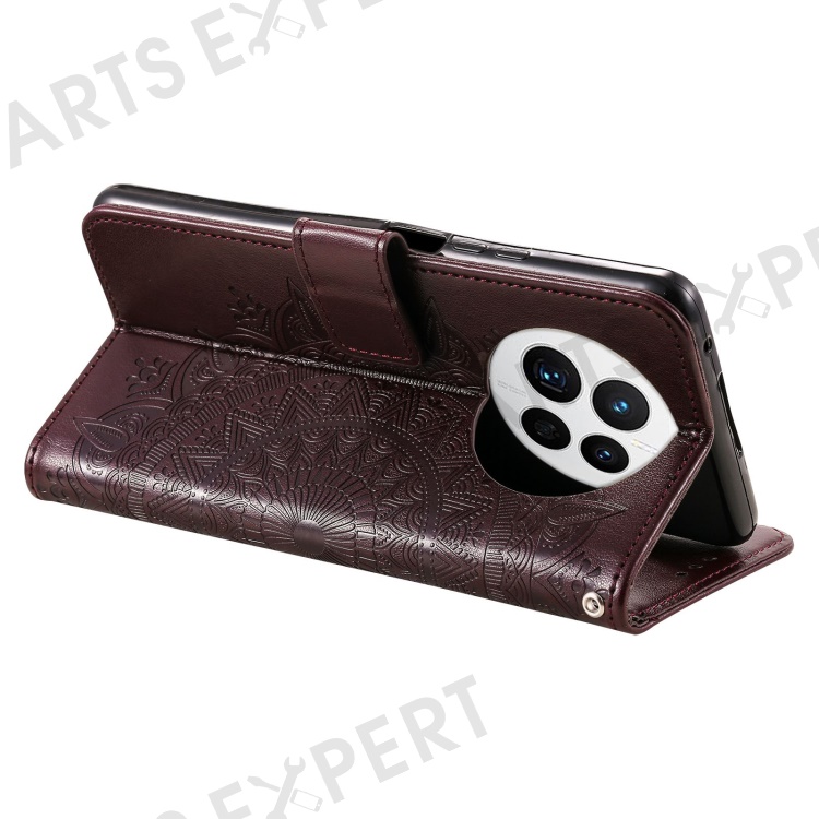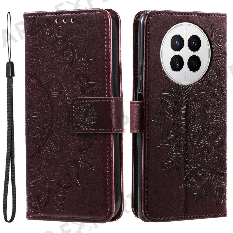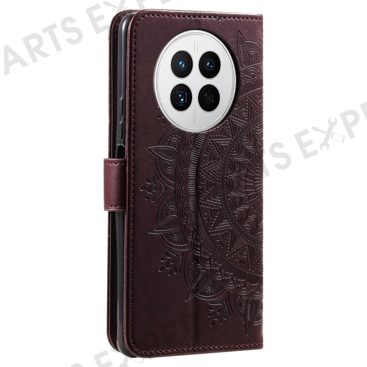 Drop-proof Phone Case For Huawei Mate 50 4G, Mandala Flower Pattern Imprinted PU Leather Anti-wear Flip Wallet Stand Cover - Brown