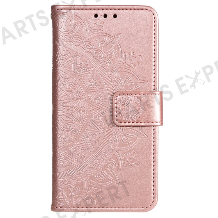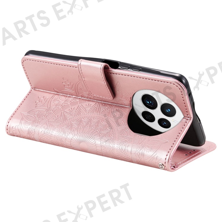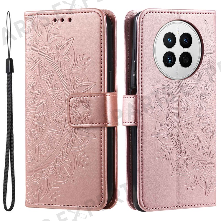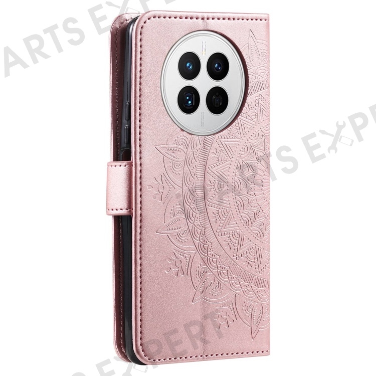 Drop-proof Phone Case For Huawei Mate 50 4G, Mandala Flower Pattern Imprinted PU Leather Anti-wear Flip Wallet Stand Cover - Rose Gold