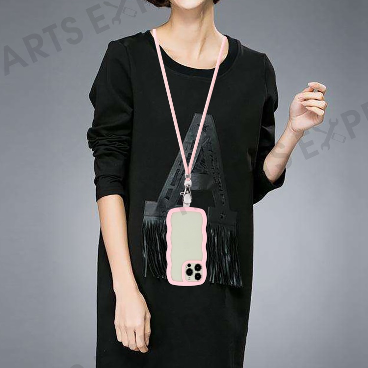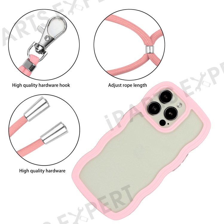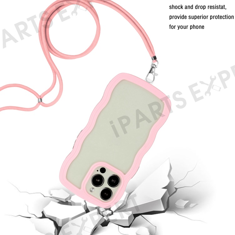 Drop-proof Phone Case For iPhone 14 Pro Wavy Edge Color Frame PC + TPU Hybrid Cell Phone Back Cover with Adjustable Lanyard - Pink