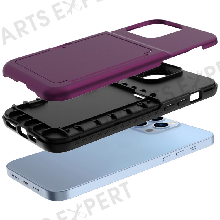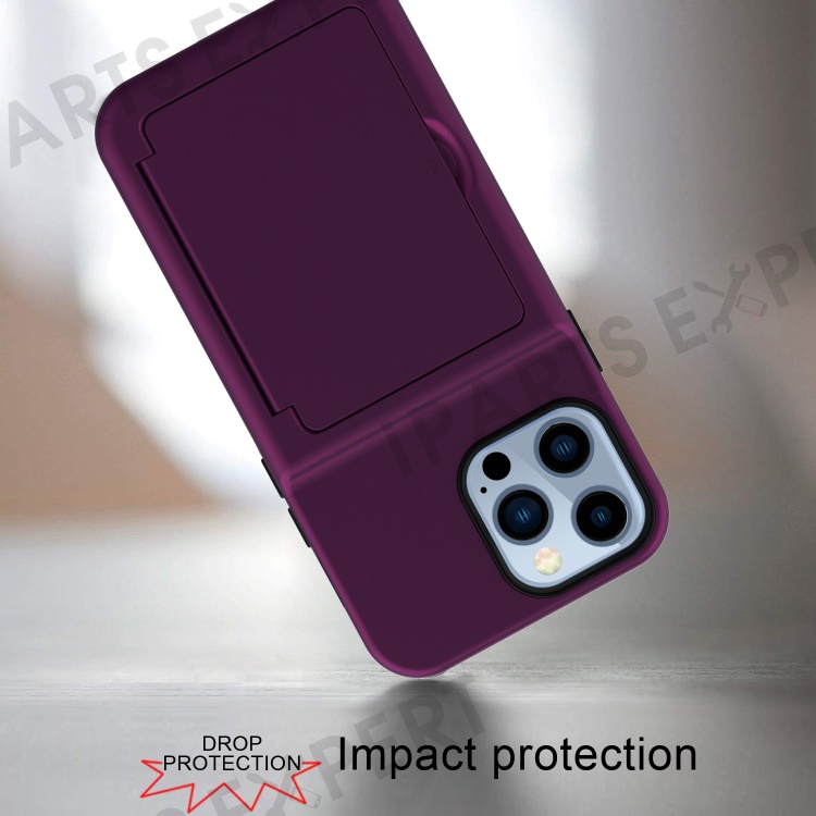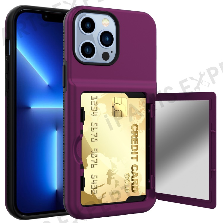 Drop Protection Acrylic+TPU Hybrid Case Cover with Card Holder and Hidden Mirror for iPhone 13 Pro Max 6.7 inch - Dark Purple