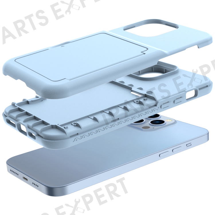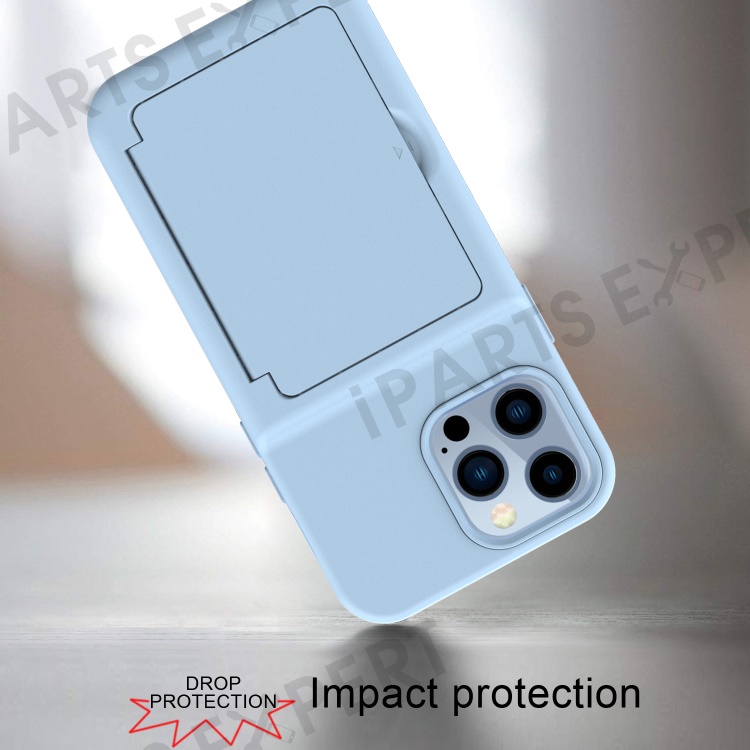 Drop Protection Acrylic+TPU Hybrid Case Cover with Card Holder and Hidden Mirror for iPhone 13 Pro Max 6.7 inch - Light Blue