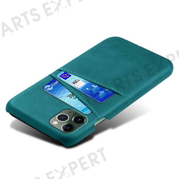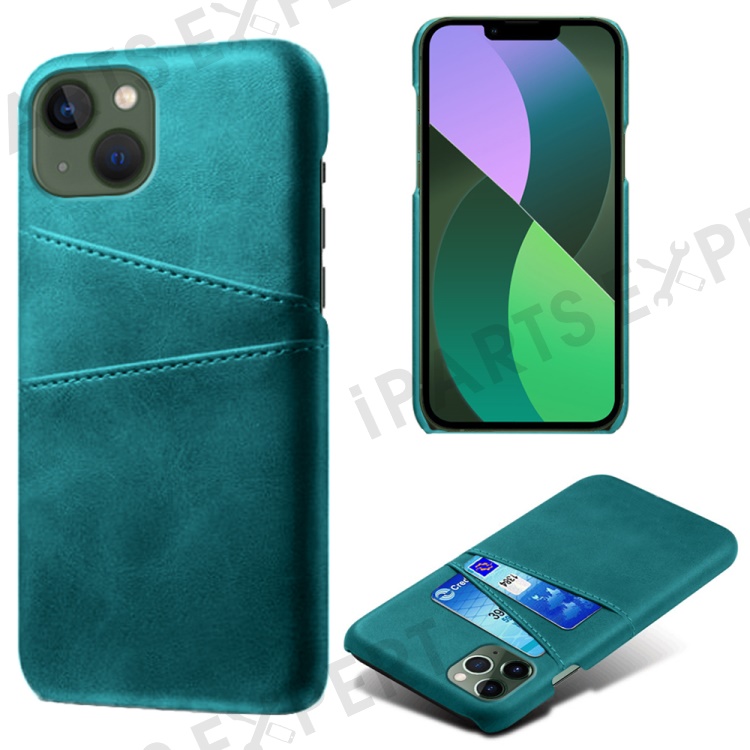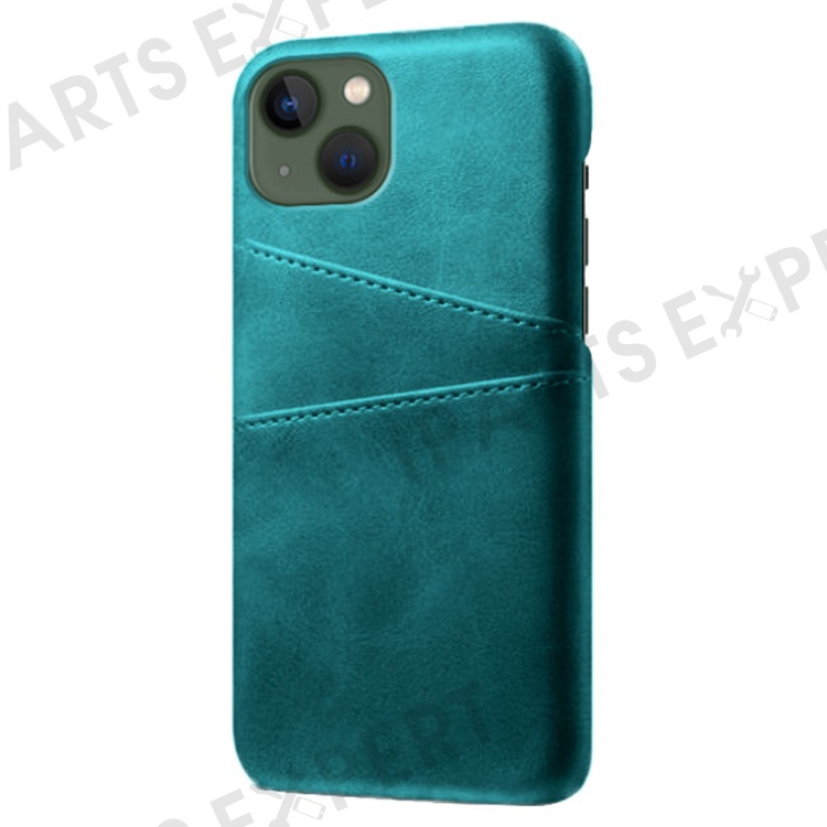 Dual Card Slots Phone Cover for iPhone 15 , PU Leather Coated PC Protective Back Case - Green