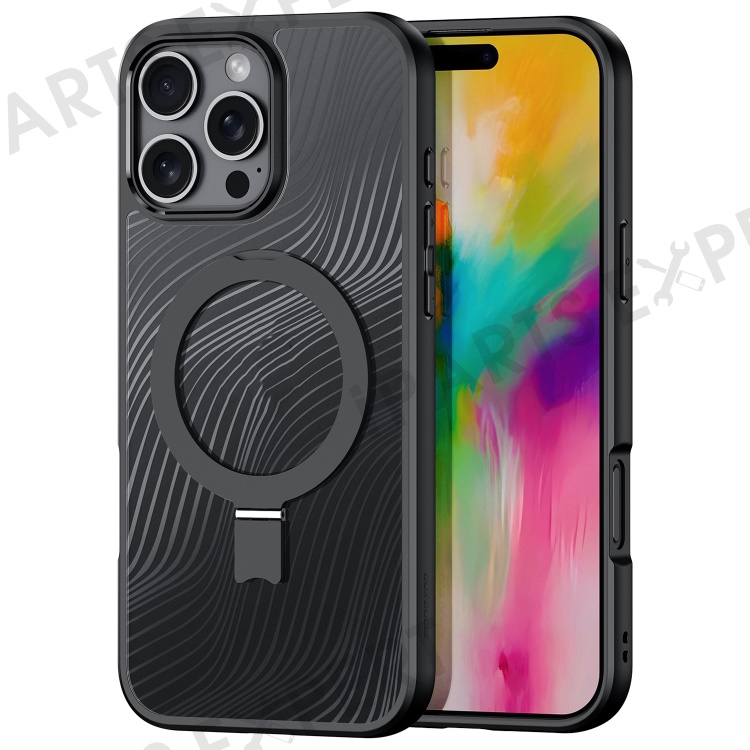DUX DUCIS Aimo Series for iPhone 16 Pro Magnetic Phone Case TPU+PC Kickstand Cover (REACH Certification) - Black