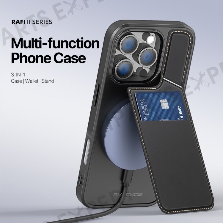 DUX DUCIS Rafi II Series for iPhone 16 Pro Max Case Compatible with MagSafe Card Slots Phone Cover - Black