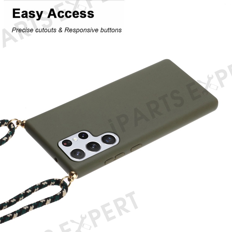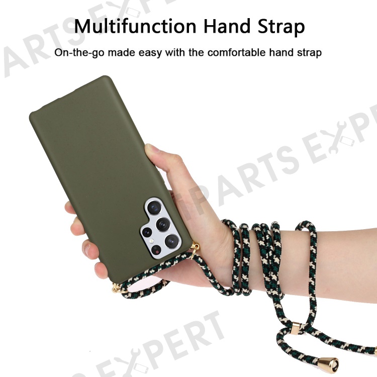 Eco-Friendly Wheat Straw + Flexible TPU Shockproof Drop Protection Case with Adjustable Lanyard for Samsung Galaxy S22 Ultra 5G - Army Green