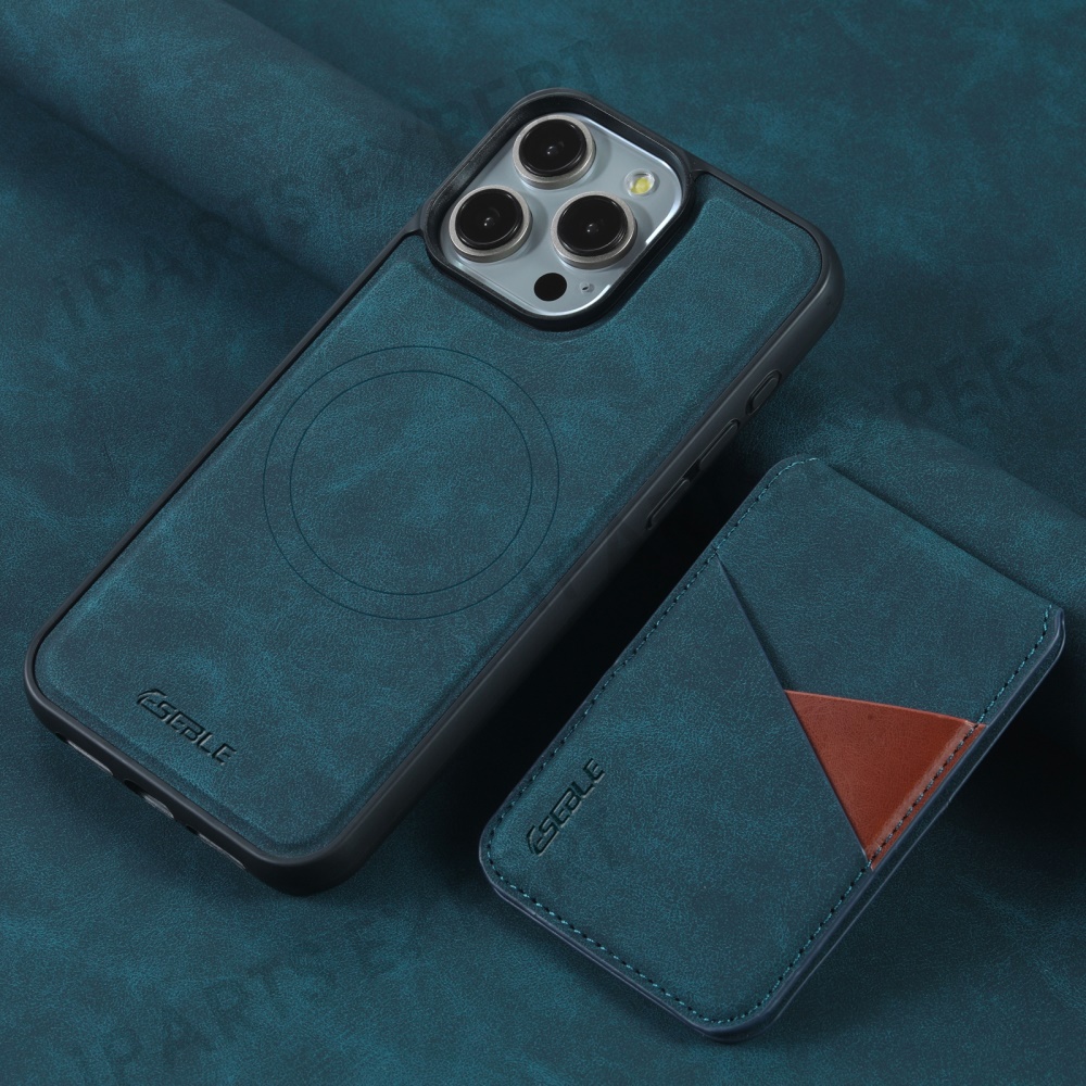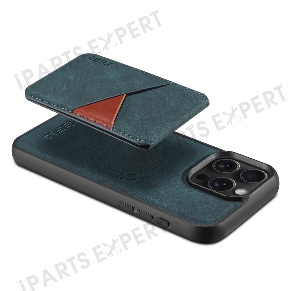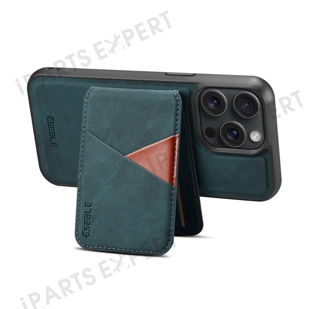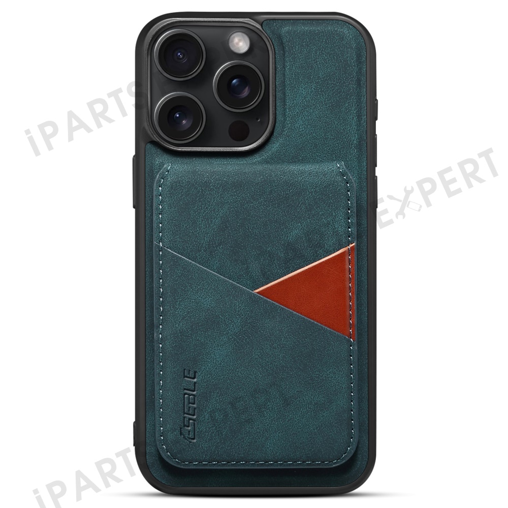 ESEBLE E2 For iPhone 15 Pro Max Magnetic Case RFID Blocking Retro Leather Back Cover with Detachable Card Holder - Green