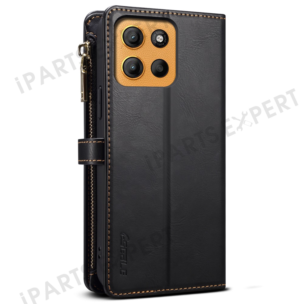 ESEBLE Galaxy Series For Motorola Moto G15 4G Case Leather Zipper Phone Cover RFID Blocking - Black