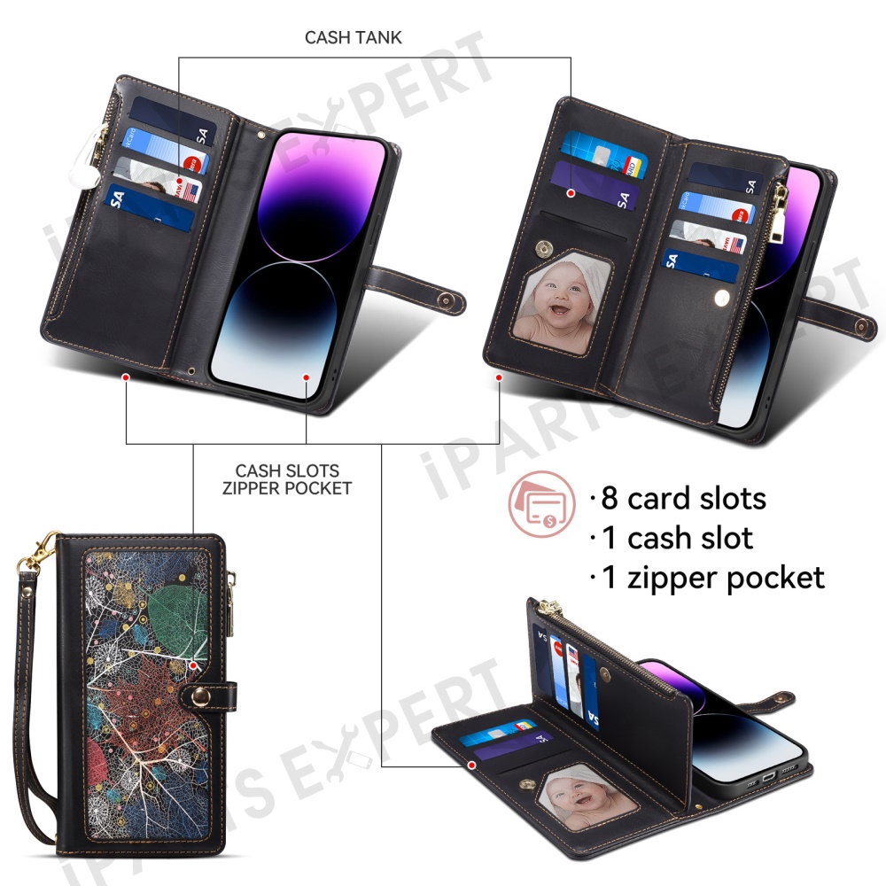 - 【Multifunctional Wallet Design】Includes 8 card slots, a cash slot, and a zipper pocket for cash and coins, ensuring you carry everything you need