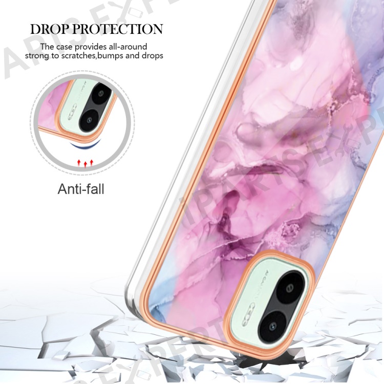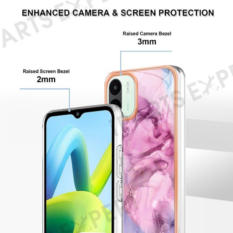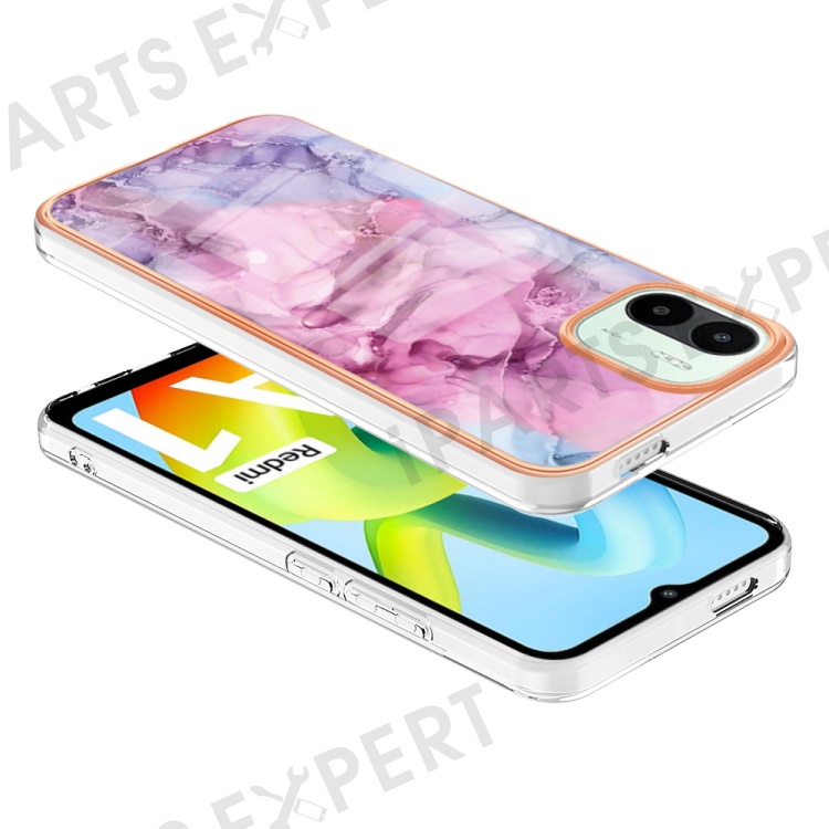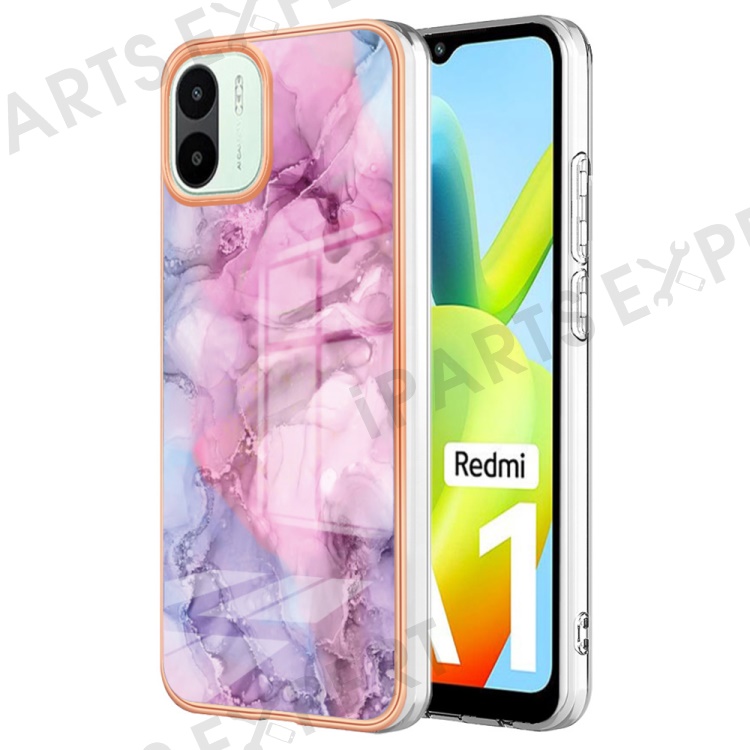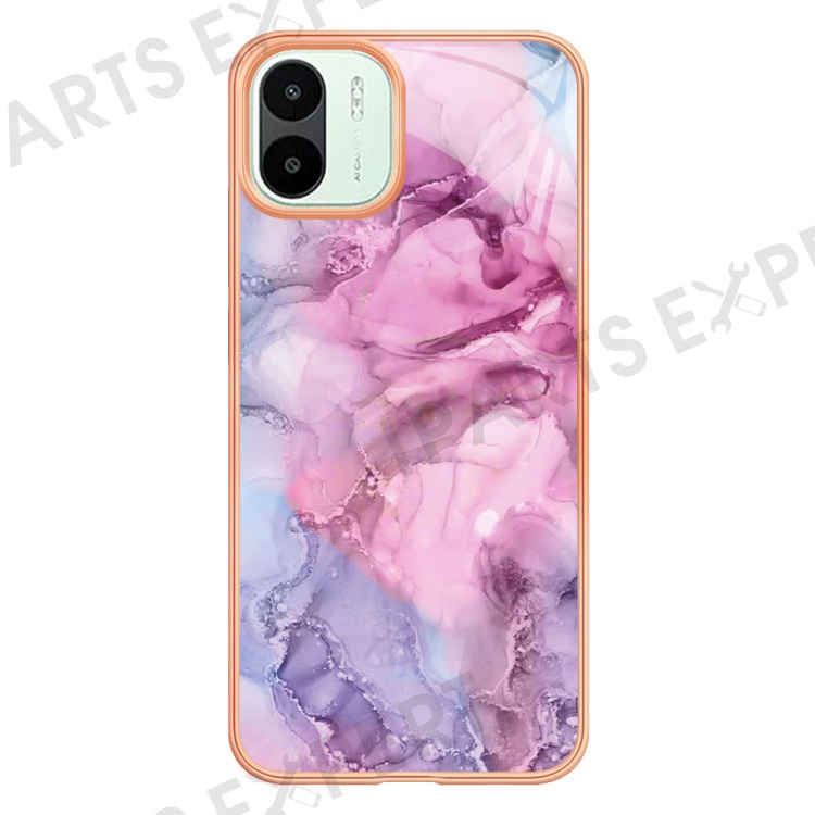 Fall Protection TPU Phone Case for Xiaomi Redmi A1 4G / A2 4G YB IMD Series-16 Style E Marble Pattern 2.0mm Electroplating Frame IMD Anti-Scratch Protective Phone Cover - Rose