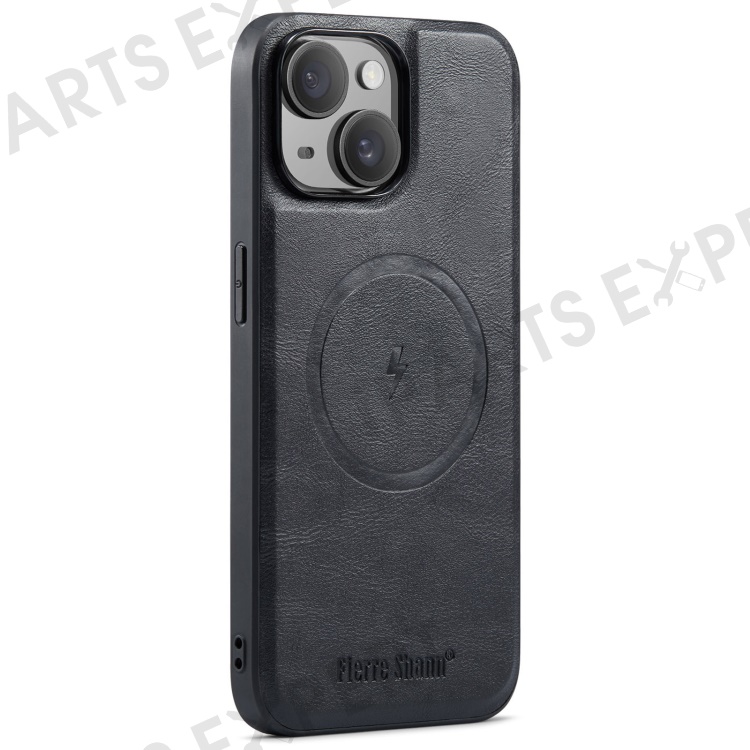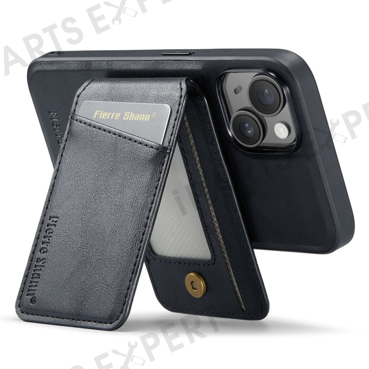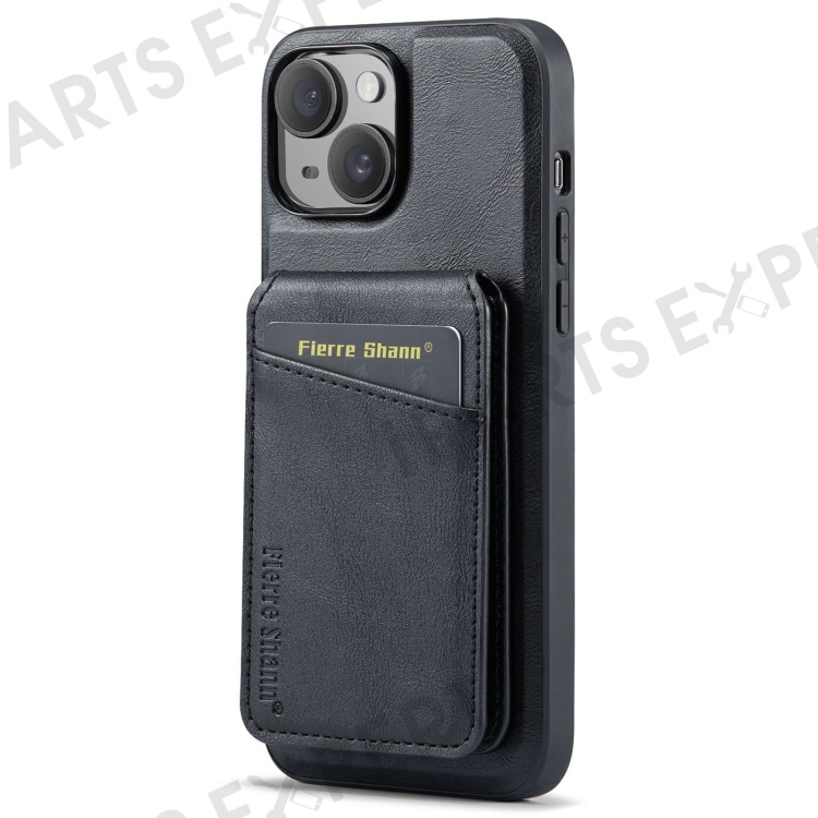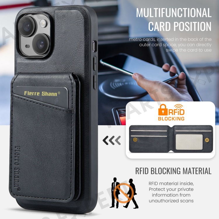 FIERRE SHANN 025 Style For iPhone 14 Case Leather+TPU Kickstand Phone Cover Detachable 2-in-1 - Black