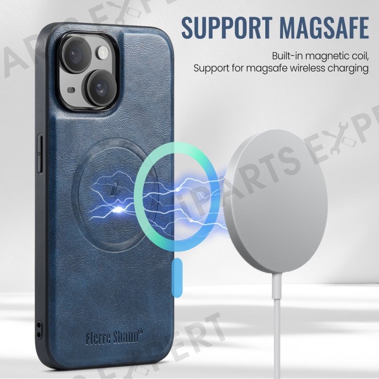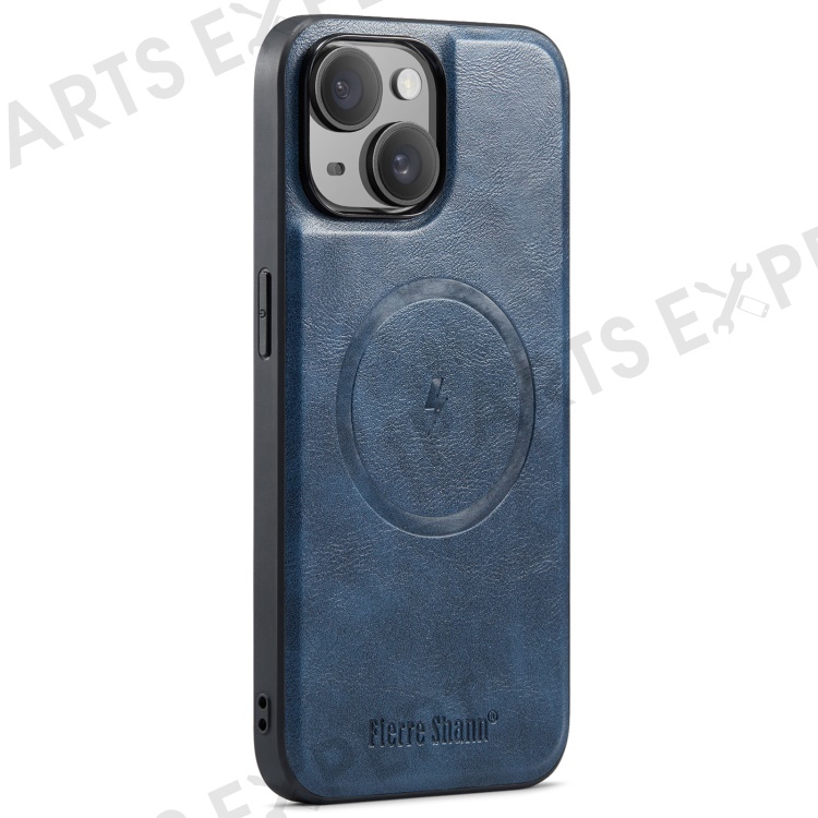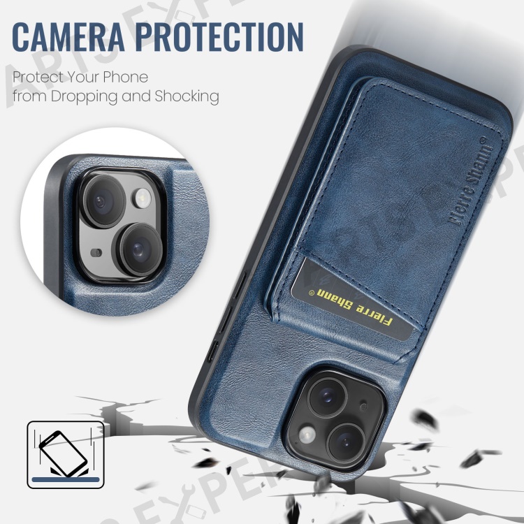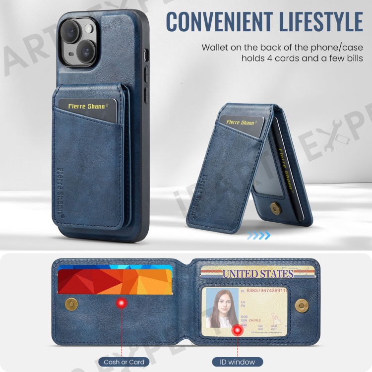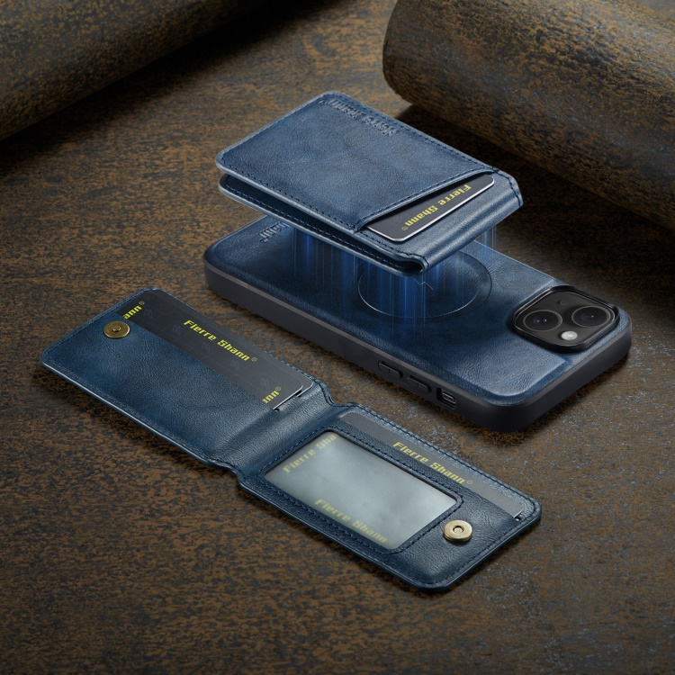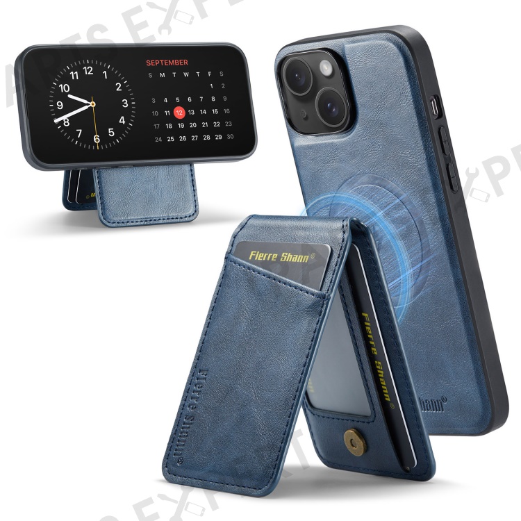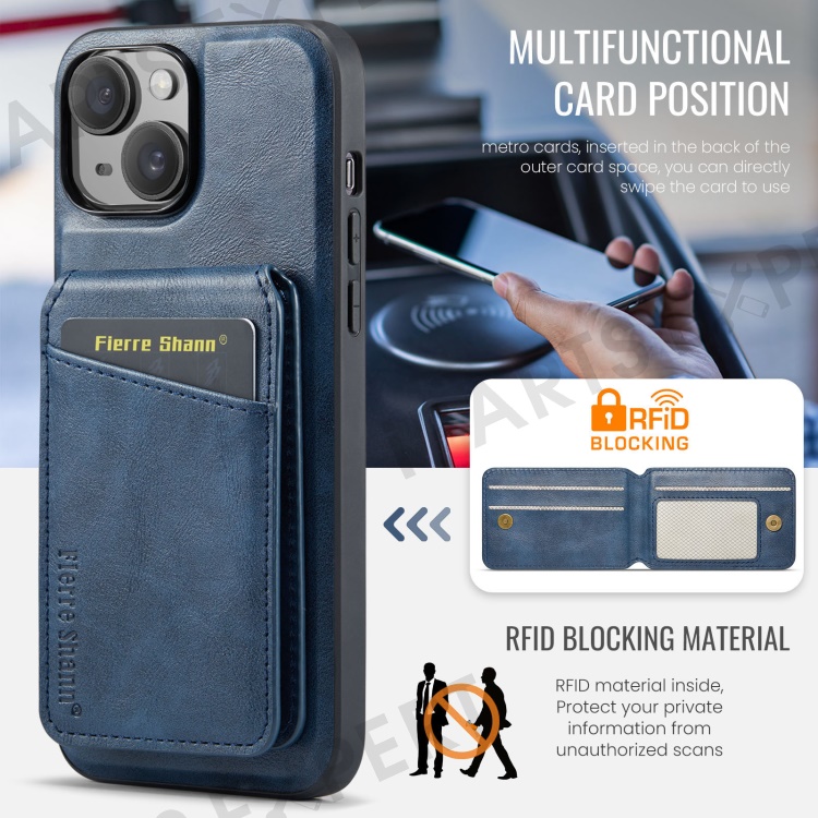 FIERRE SHANN 025 Style For iPhone 14 Case Leather+TPU Kickstand Phone Cover Detachable 2-in-1 - Blue