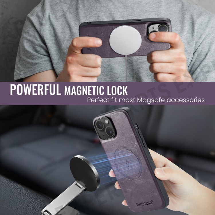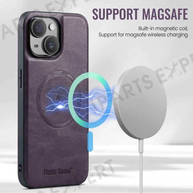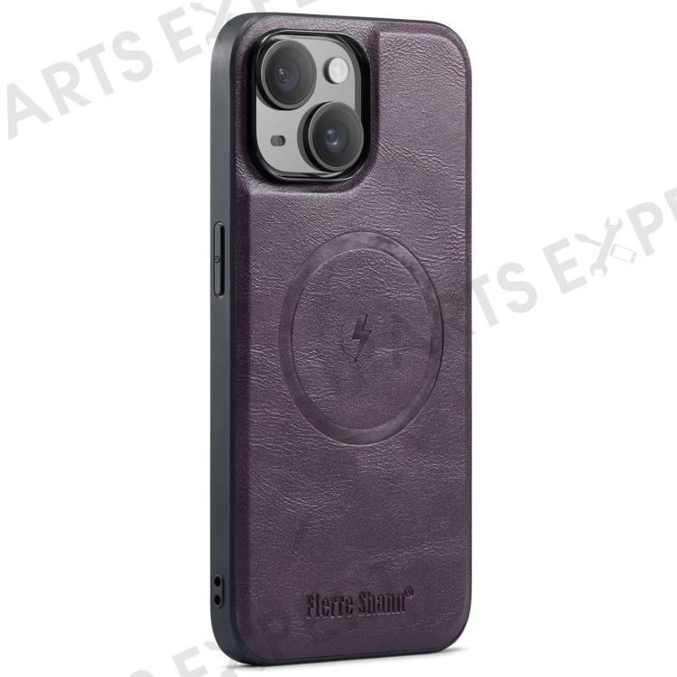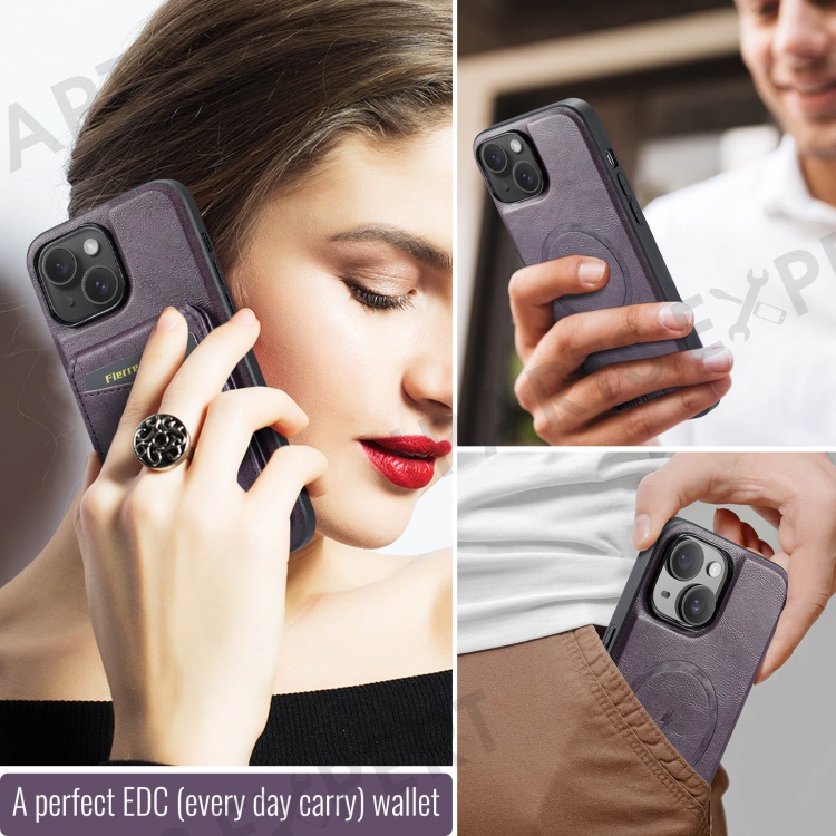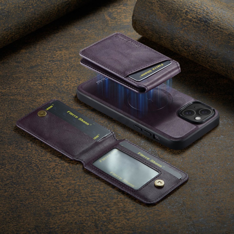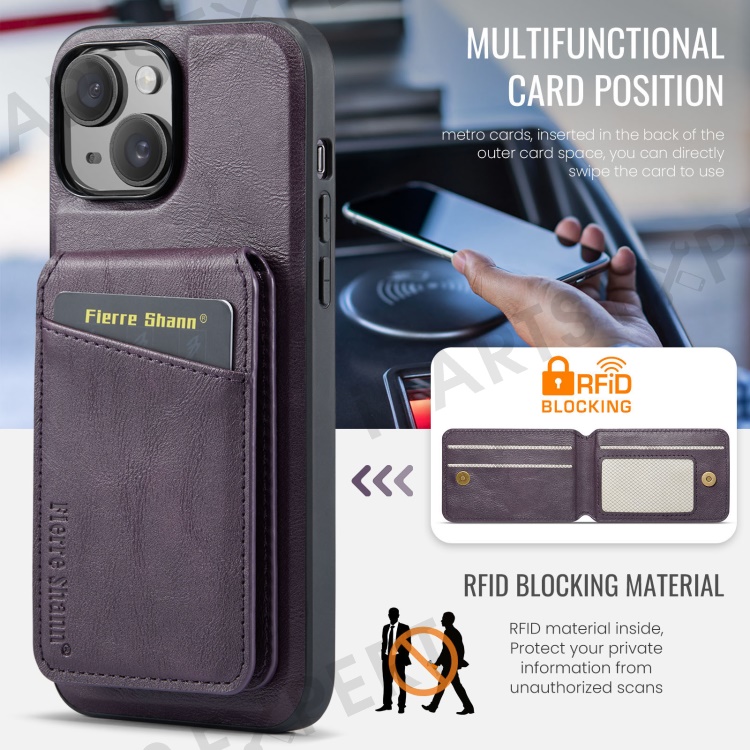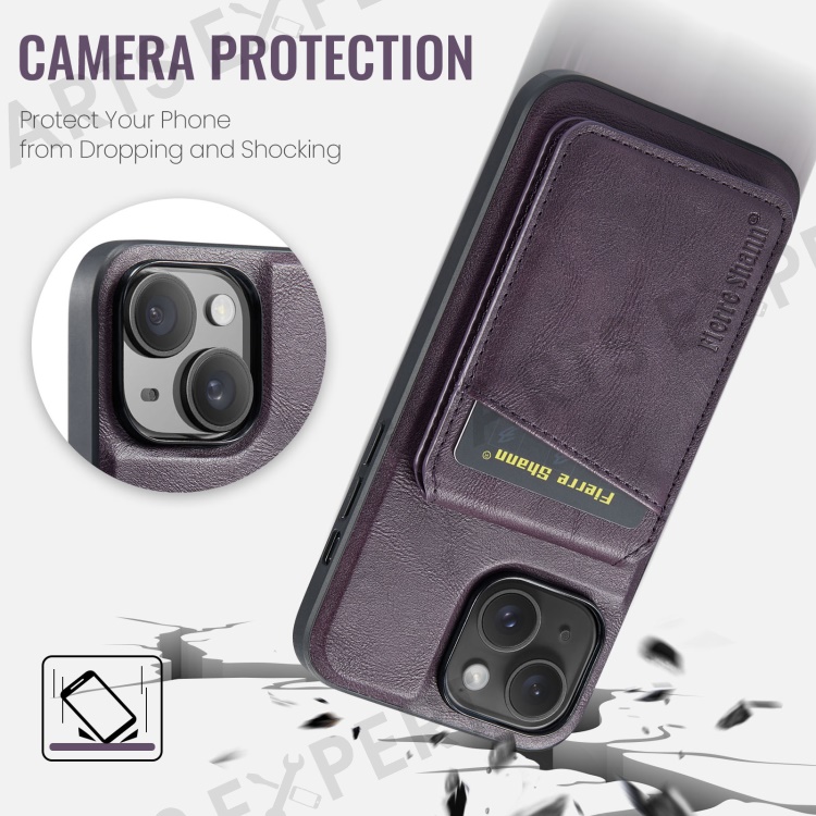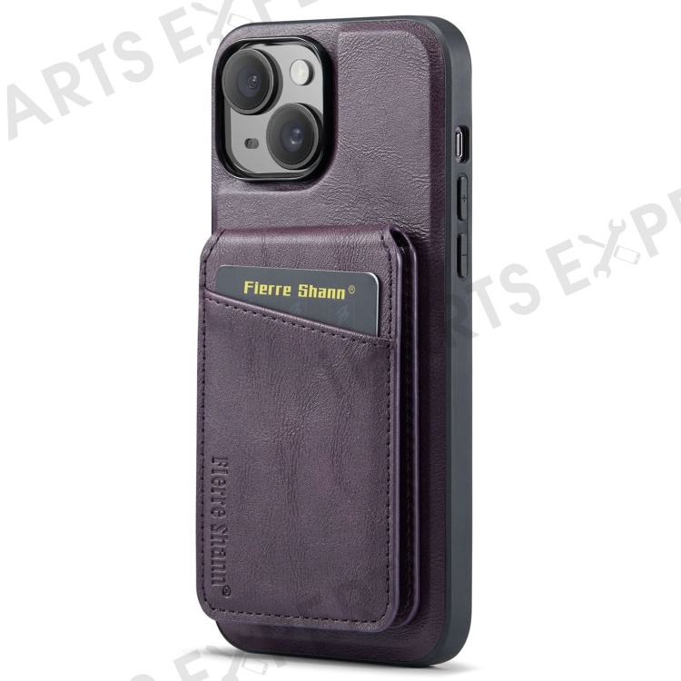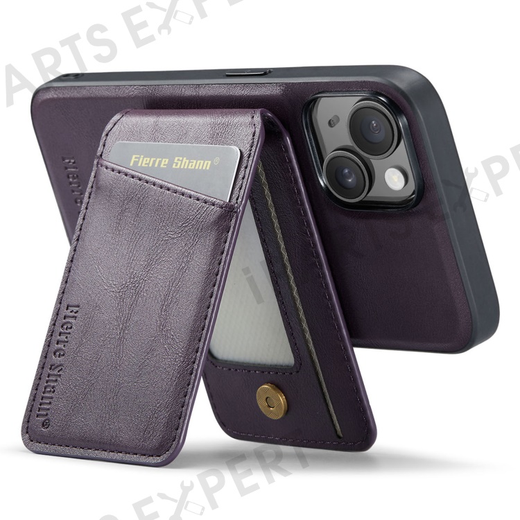 FIERRE SHANN 025 Style For iPhone 14 Case Leather+TPU Kickstand Phone Cover Detachable 2-in-1 - Purple