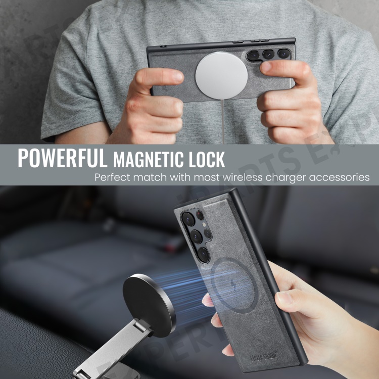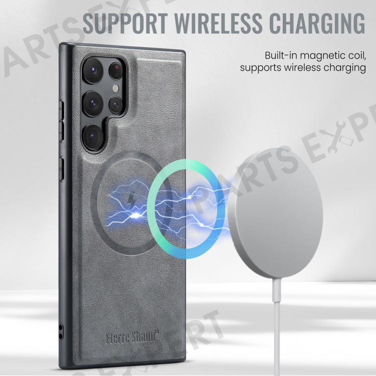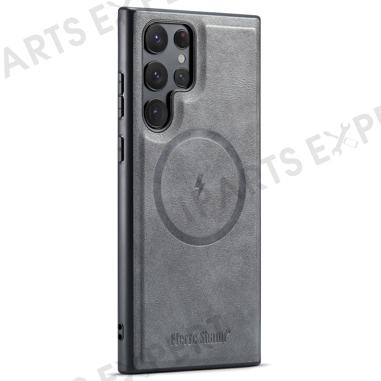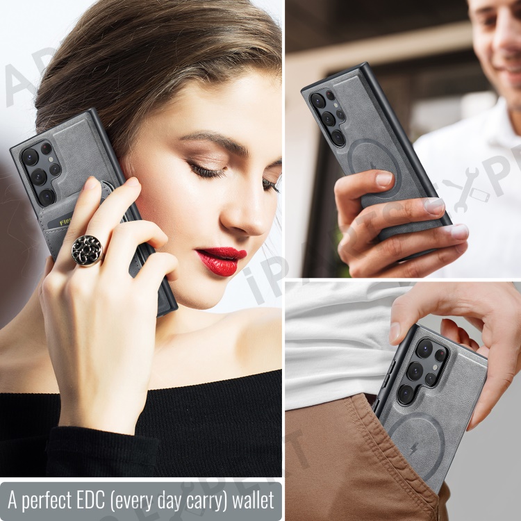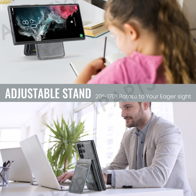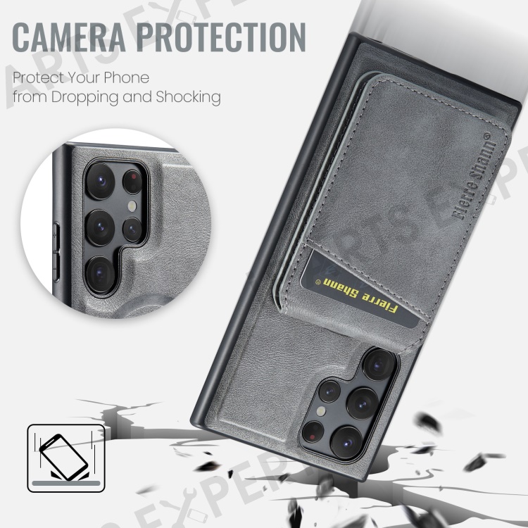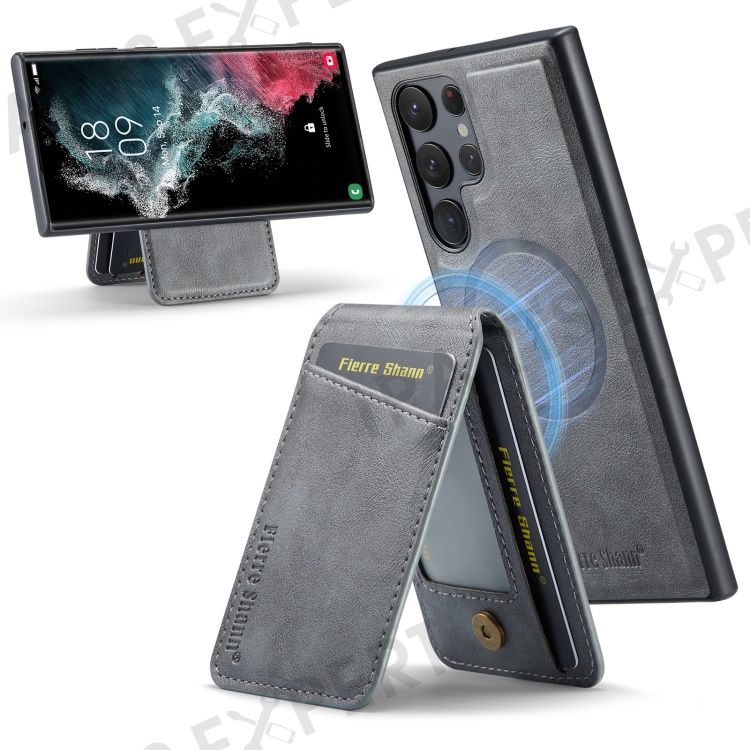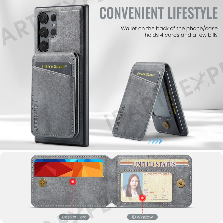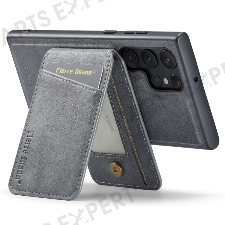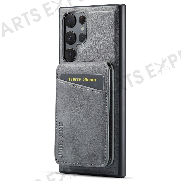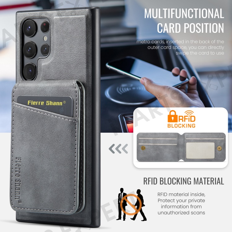 FIERRE SHANN 025 Style For Samsung Galaxy S22 Ultra 5G Case RFID Blocking Leather+TPU Phone Cover Detachable - Grey