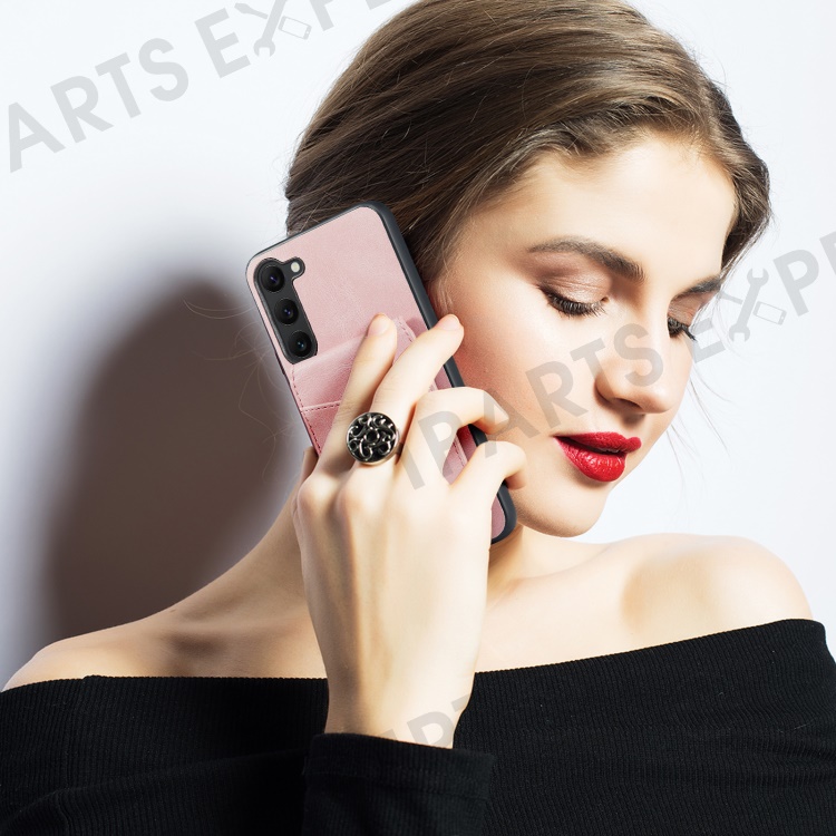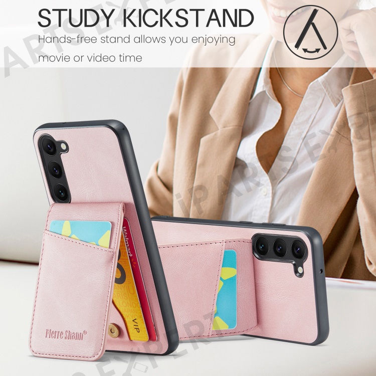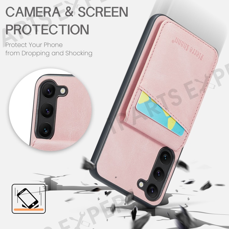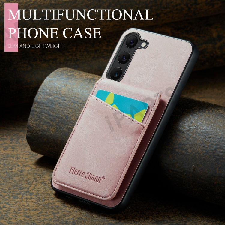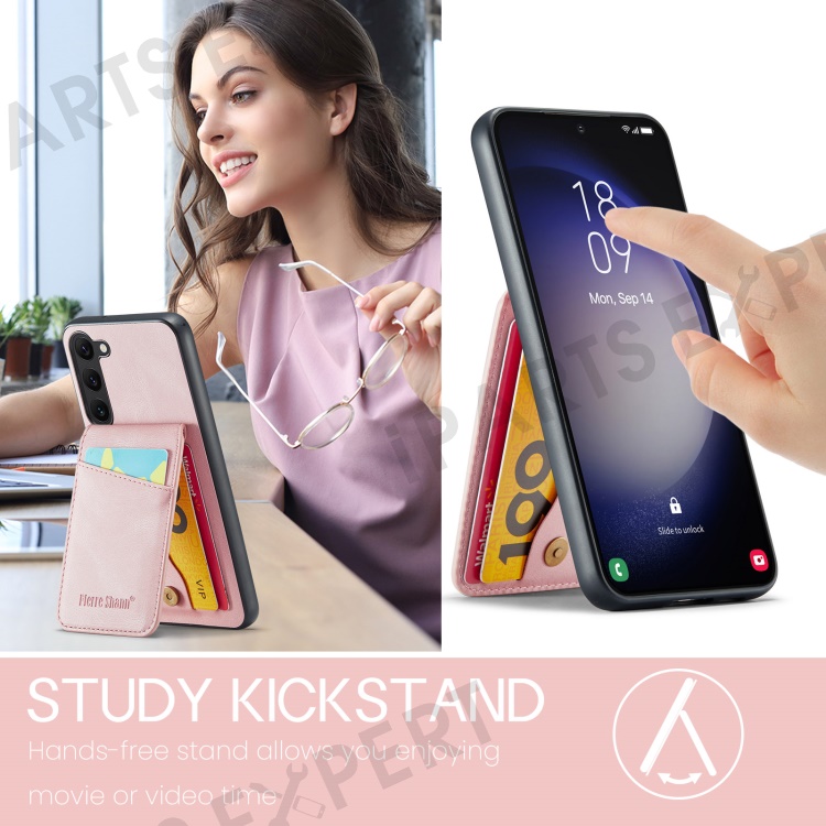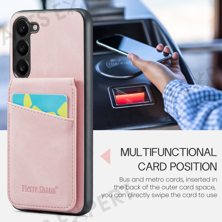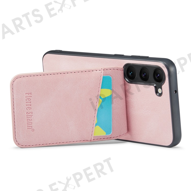 FIERRE SHANN For Samsung Galaxy S24+ Case RFID Blocking PU Leather+TPU Phone Cover - Pink