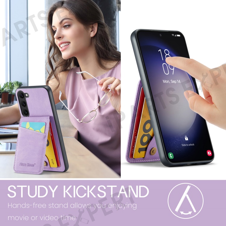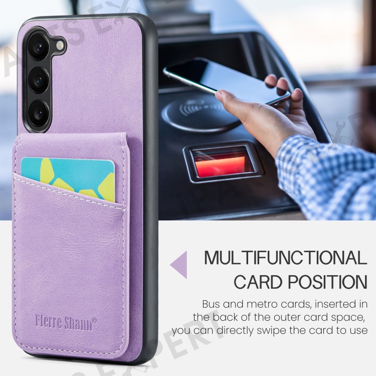 FIERRE SHANN For Samsung Galaxy S24+ Case RFID Blocking PU Leather+TPU Phone Cover - Purple