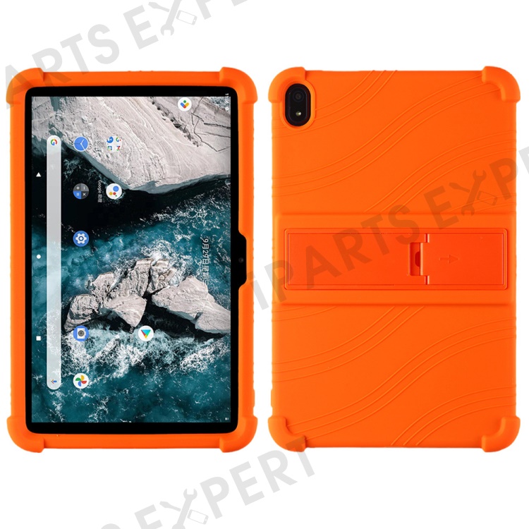 Flexible Silicone Tablet Shell for Nokia T20 Cover with Foldable Supporting Kickstand - Orange