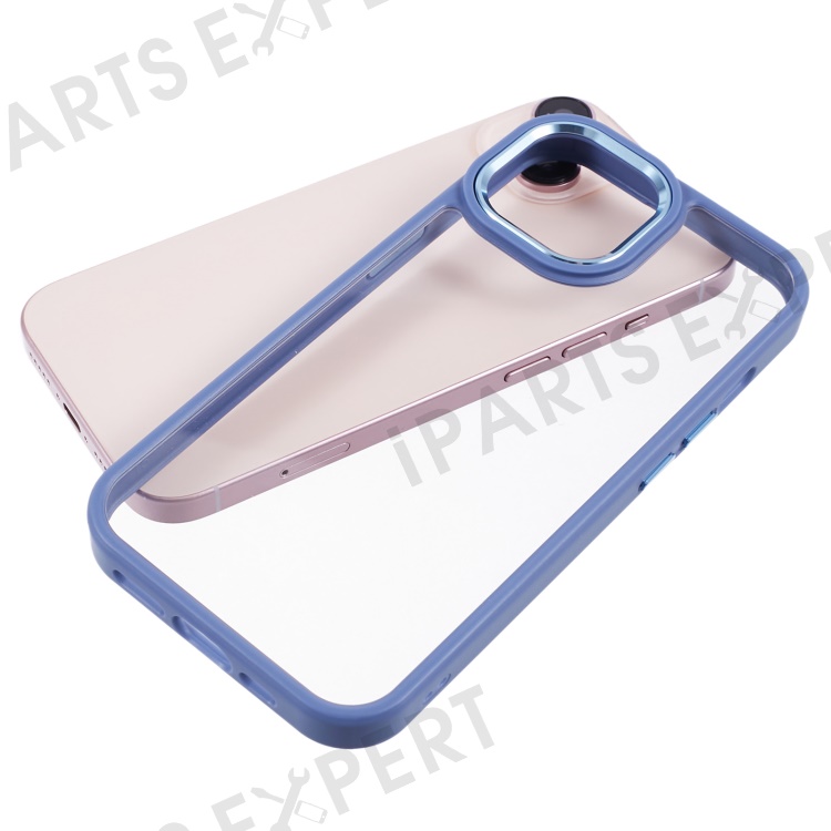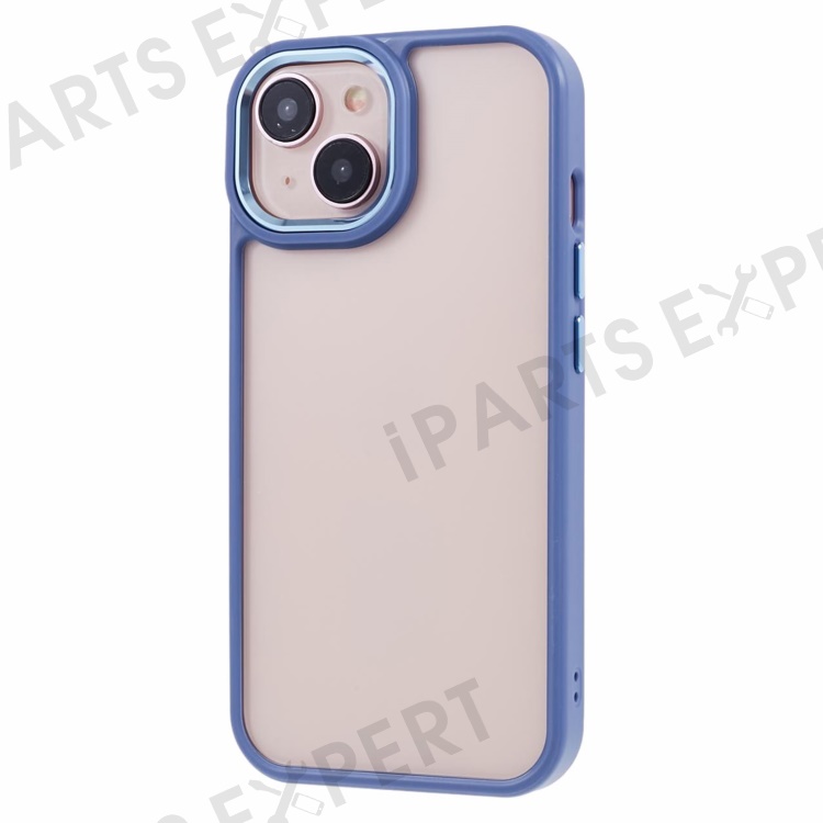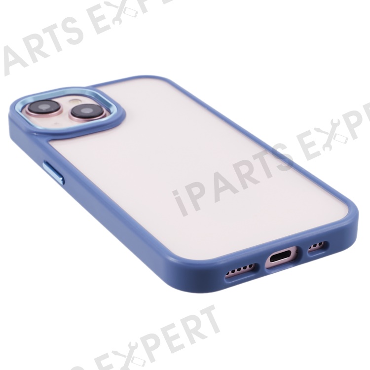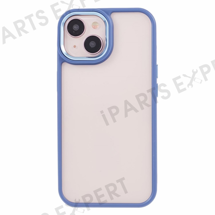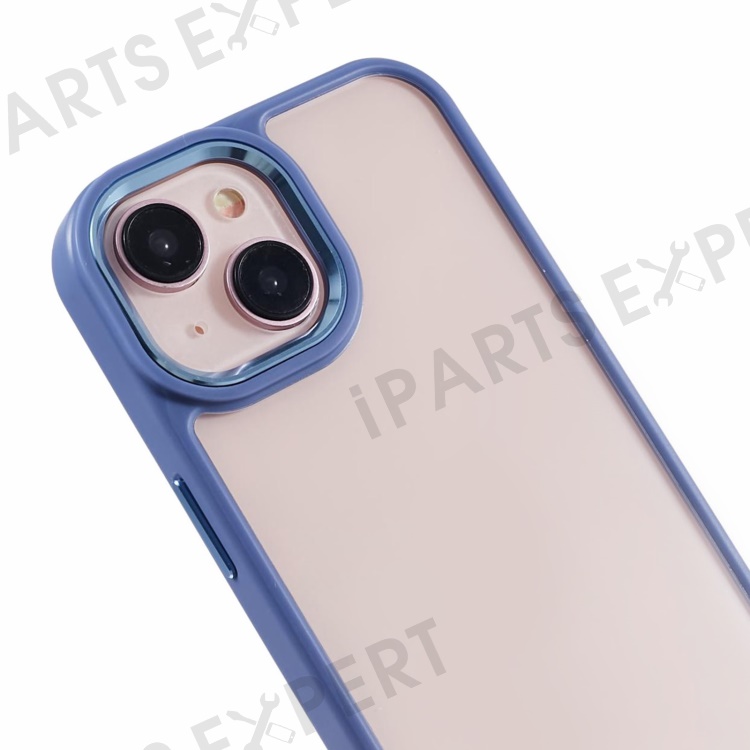 For iPhone 13 6.1 inch Case Drop-proof TPU+PC Clear Phone Cover with Metal Button - Blue