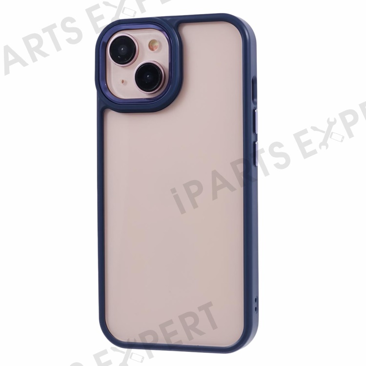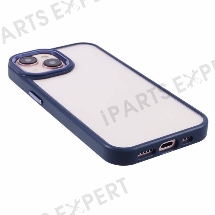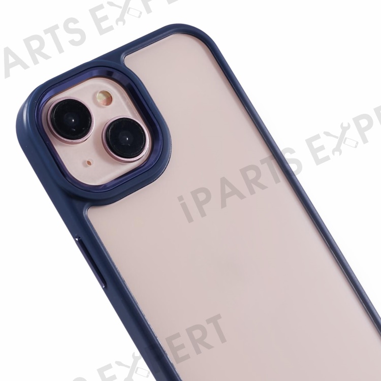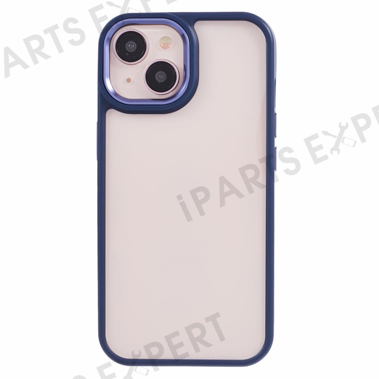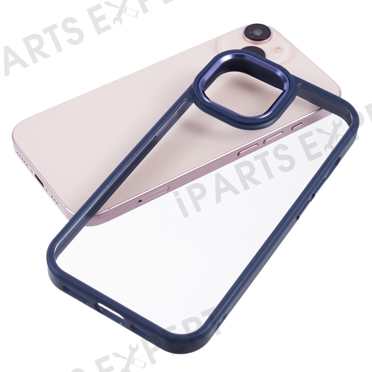 For iPhone 13 6.1 inch Case Drop-proof TPU+PC Clear Phone Cover with Metal Button - Navy Blue