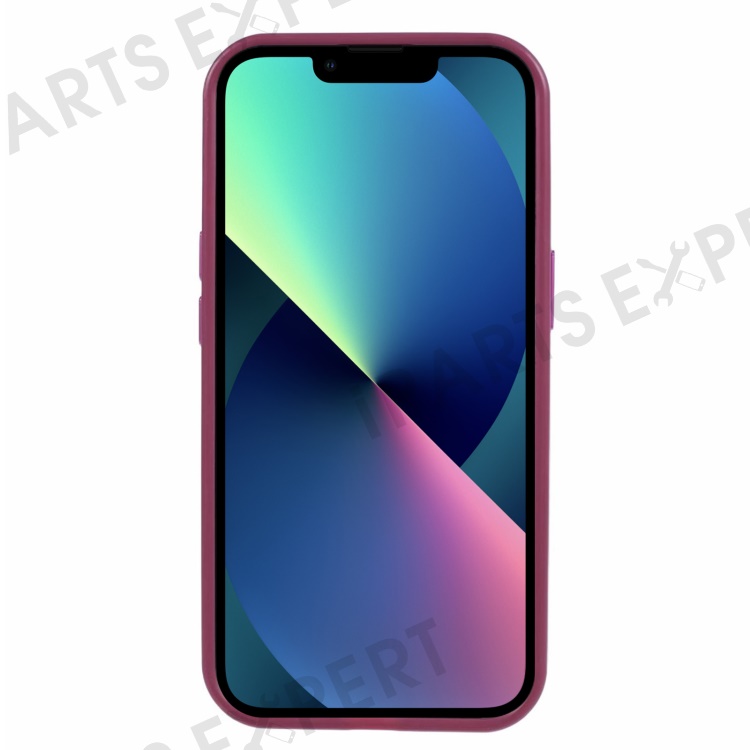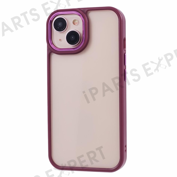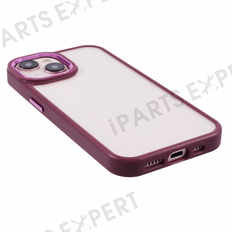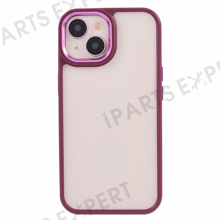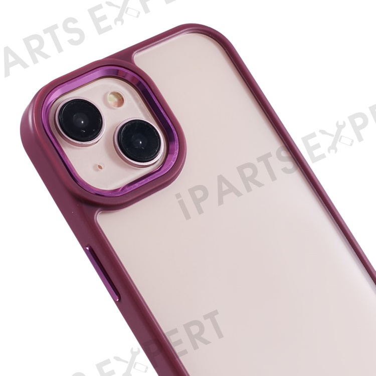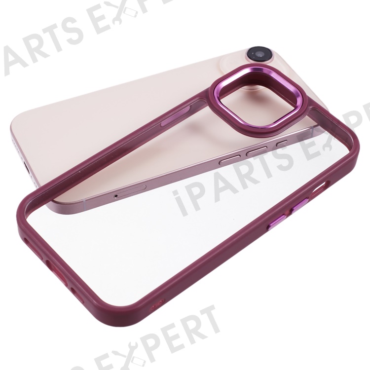 For iPhone 13 6.1 inch Case Drop-proof TPU+PC Clear Phone Cover with Metal Button - Plum Color