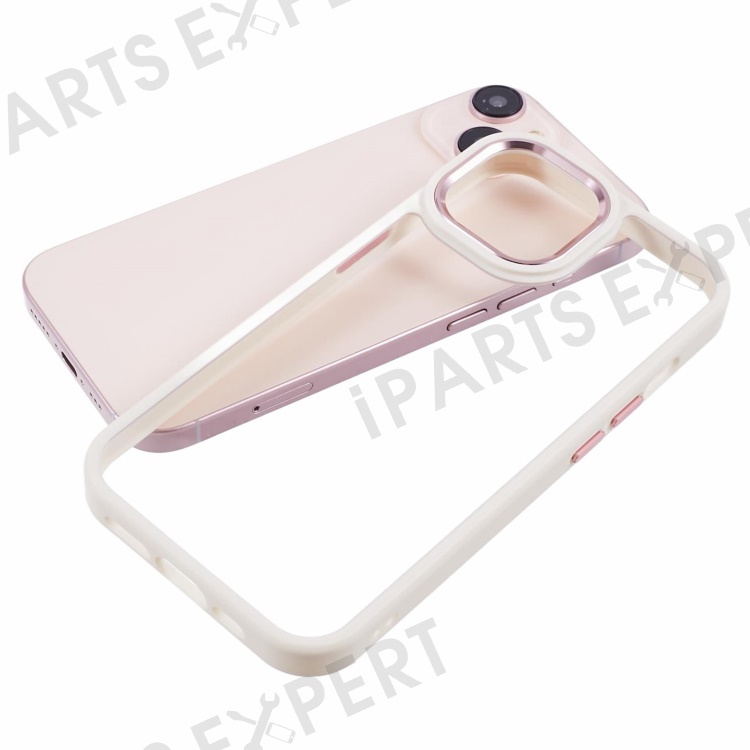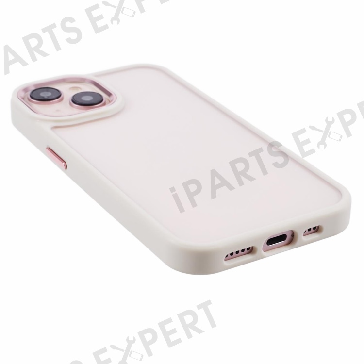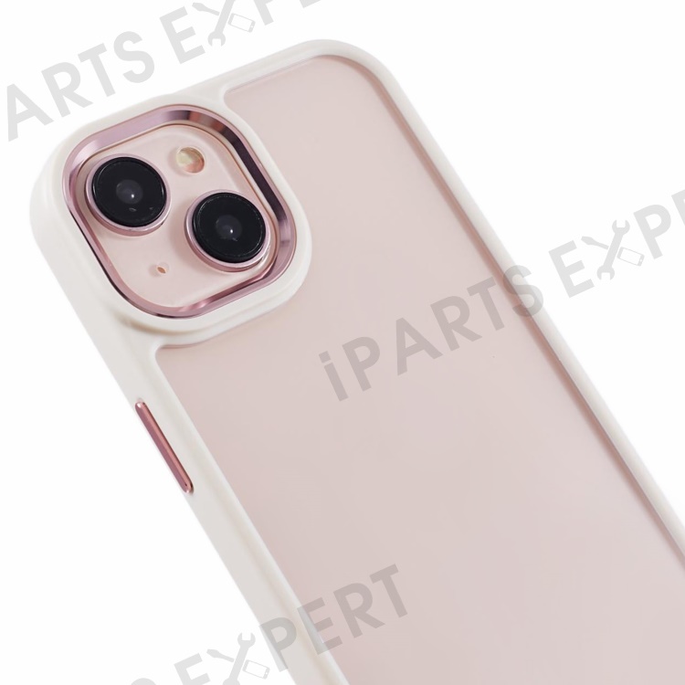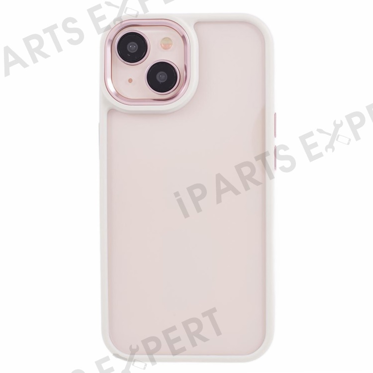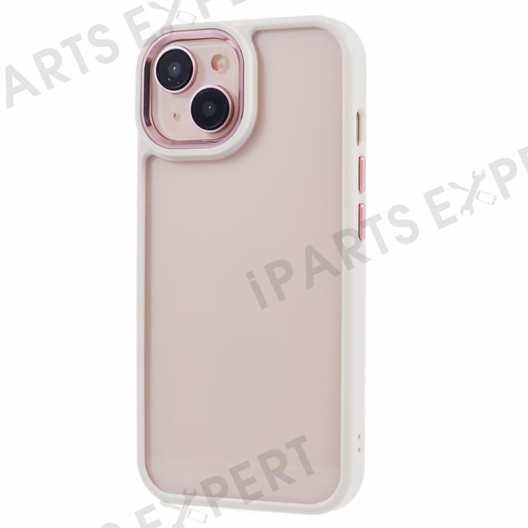 For iPhone 13 6.1 inch Case Drop-proof TPU+PC Clear Phone Cover with Metal Button - White