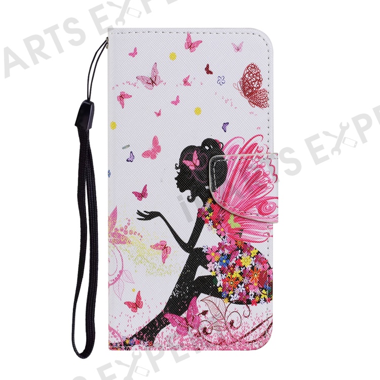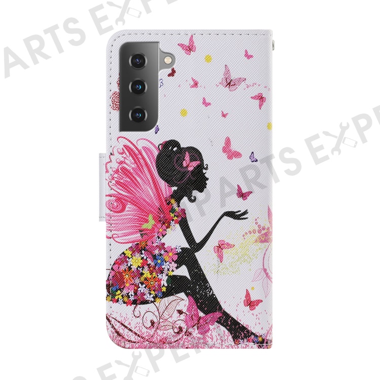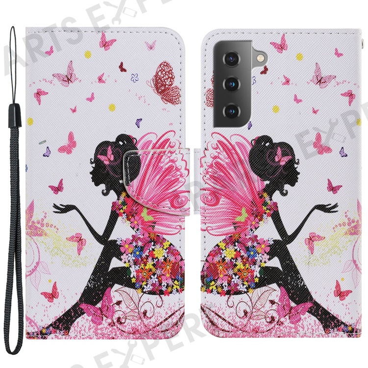 Foldable Stand Wallet Leather Case Pattern Printing Phone Cover Shell with Wrist Strap for Samsung Galaxy S22 5G - Beautiful Girl