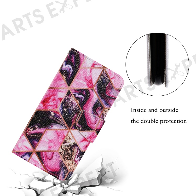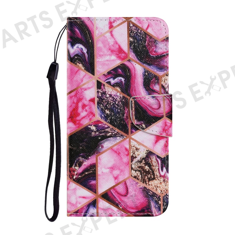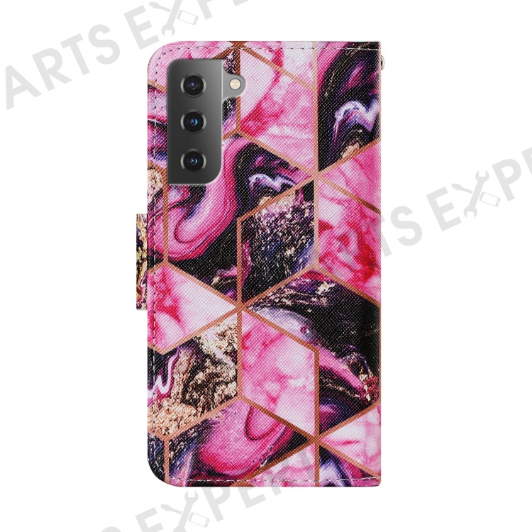Foldable Stand Wallet Leather Case Pattern Printing Phone Cover Shell with Wrist Strap for Samsung Galaxy S22 5G - Purple Marble Pattern