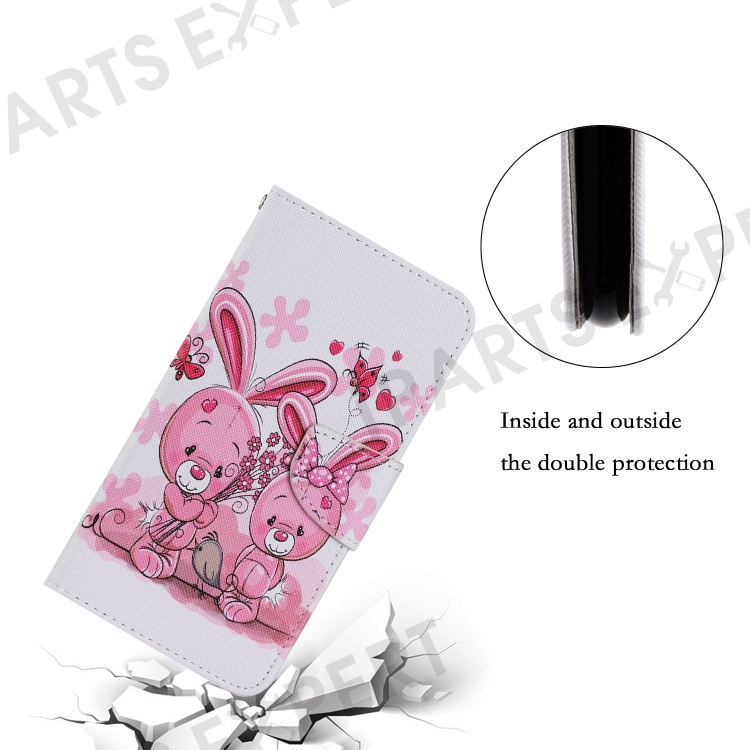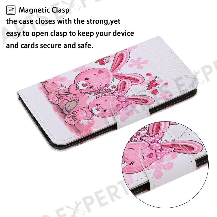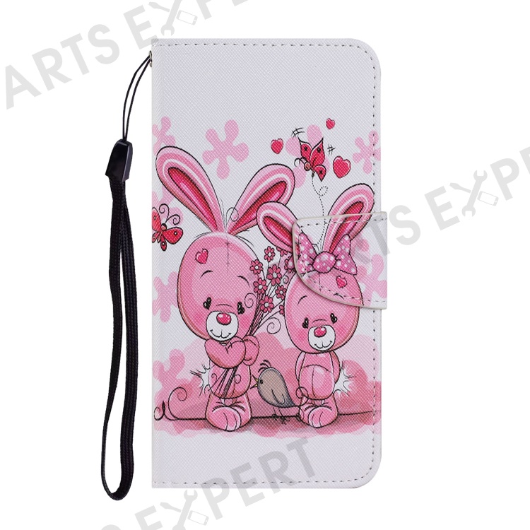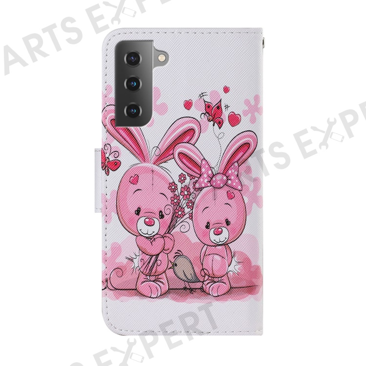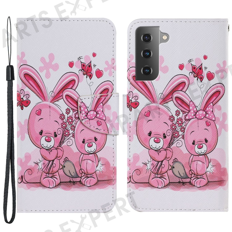 Foldable Stand Wallet Leather Case Pattern Printing Phone Cover Shell with Wrist Strap for Samsung Galaxy S22 5G - Rabbit