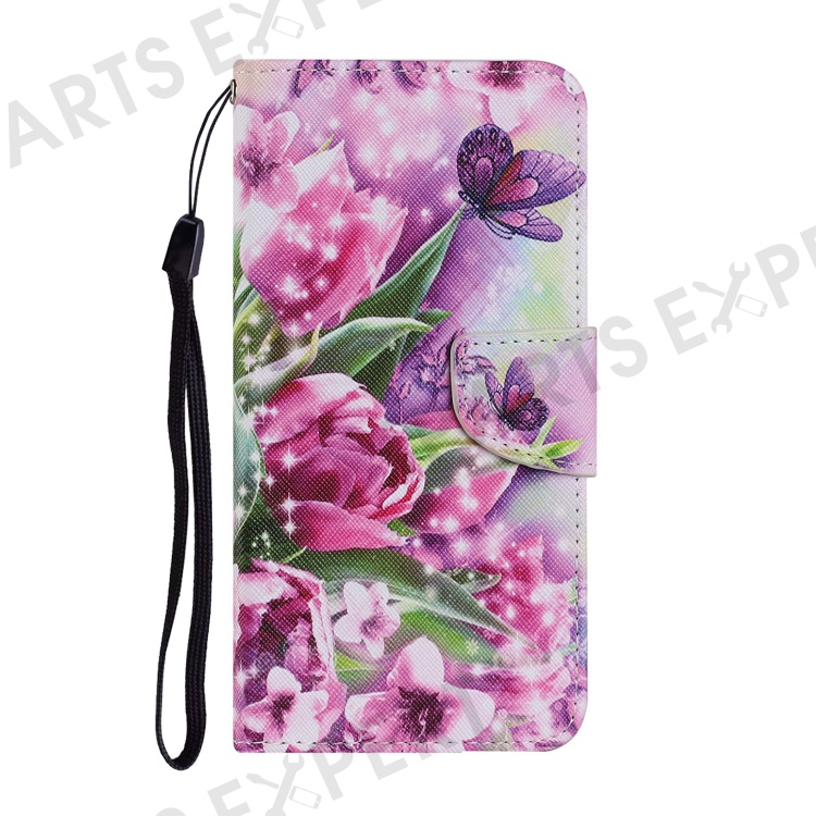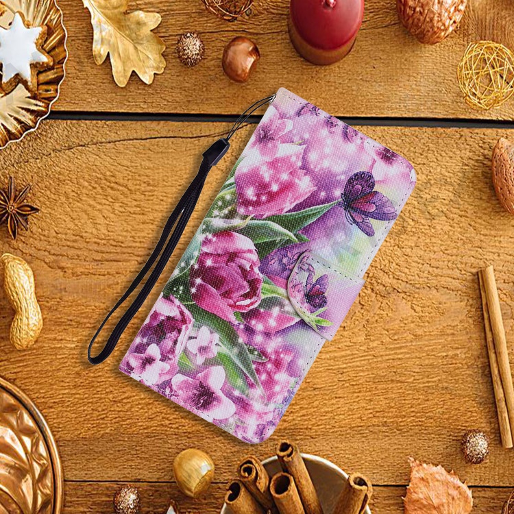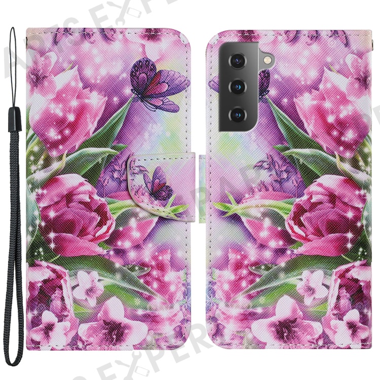 Foldable Stand Wallet Leather Case Pattern Printing Phone Cover Shell with Wrist Strap for Samsung Galaxy S22 5G - Rose and Butterfly
