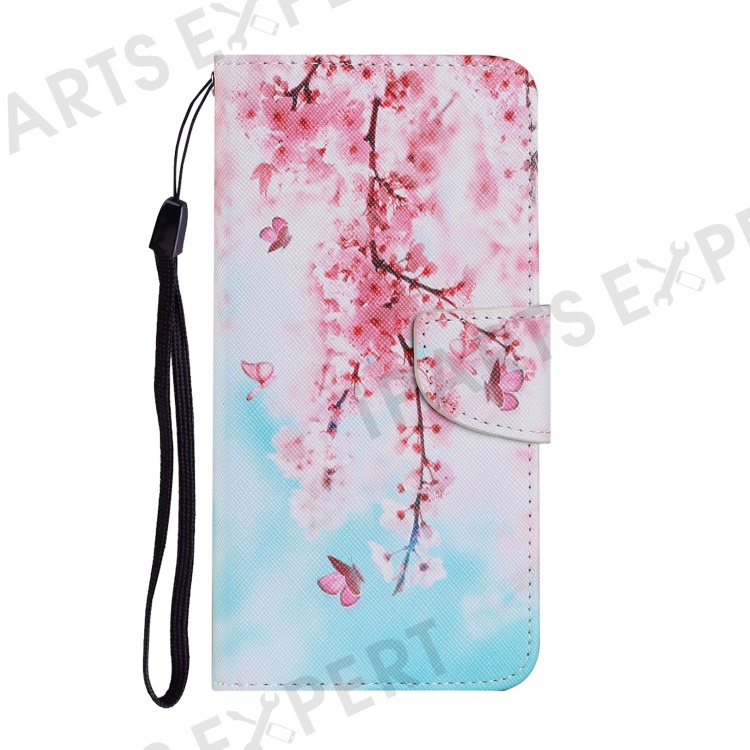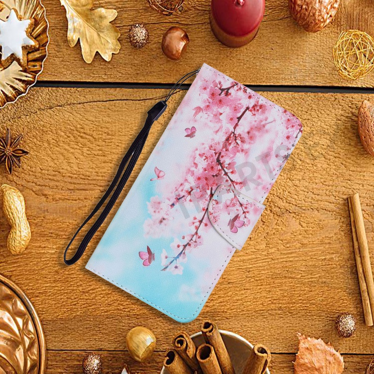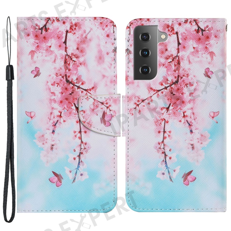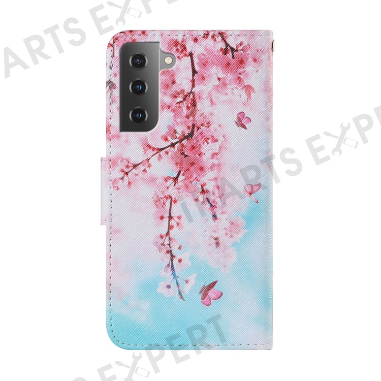 Foldable Stand Wallet Leather Case Pattern Printing Phone Cover Shell with Wrist Strap for Samsung Galaxy S22 5G - Sakura