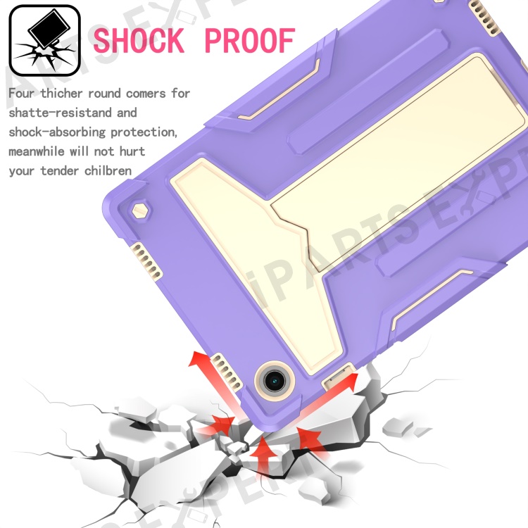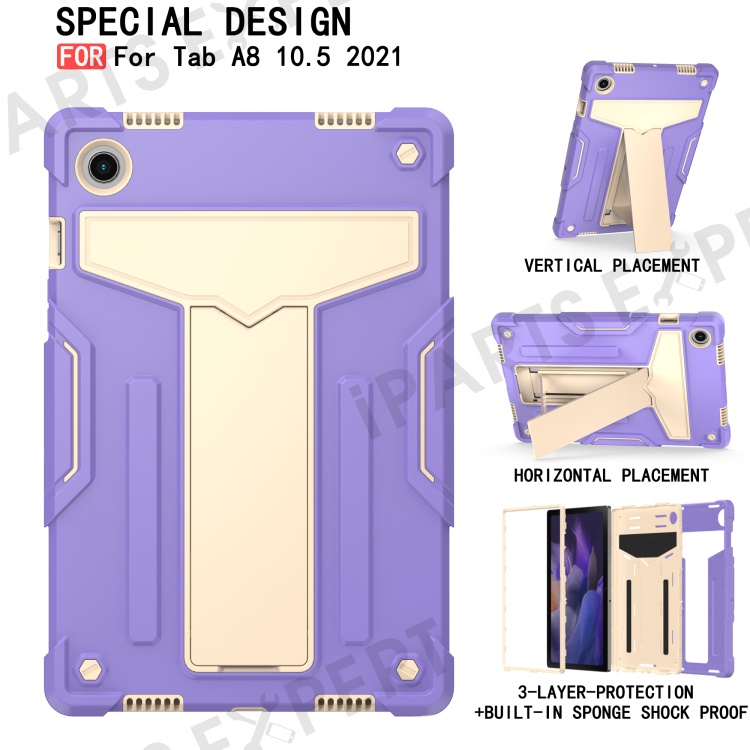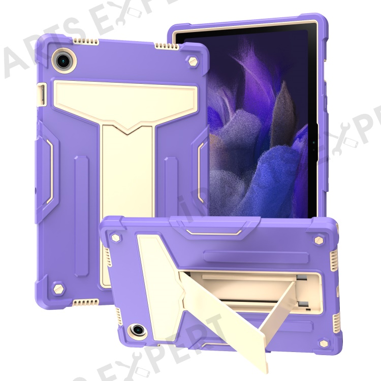 Foldable T-shaped Tablet Case with Kickstand PC Silicone Shockproof Protector Cover for Samsung Galaxy Tab A8 10.5 (2021) / A8 10.5 (2022) - Purple + Beige
