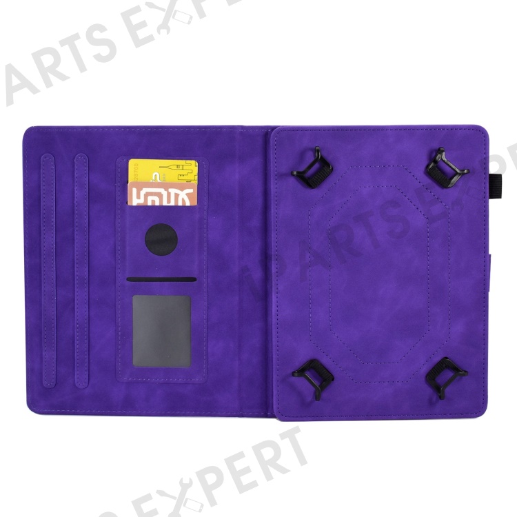 Folio Stand Case for 10.0" Tablet, Pattern Imprinted PU Leather Card Slots Universal Protective Cover with Pen Holder, Support Auto Sleep / Wake - Purple