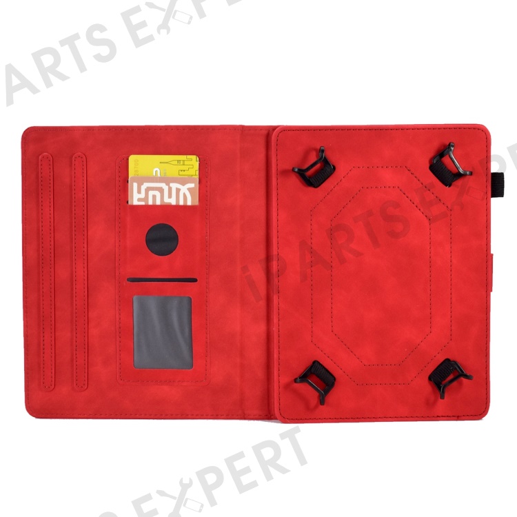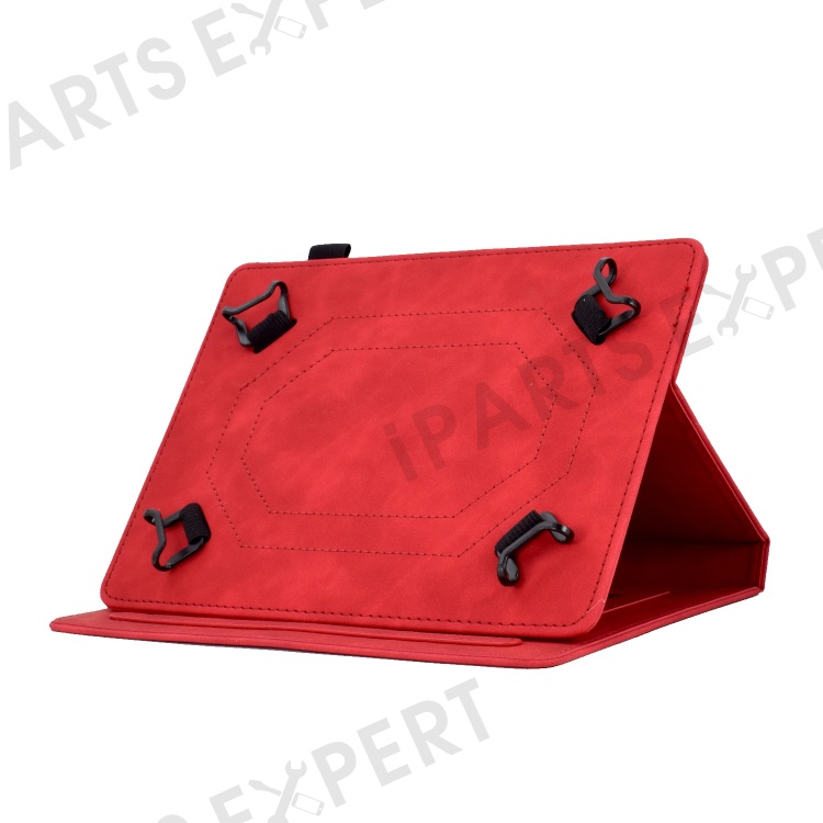 Folio Stand Case for 10.0" Tablet, Pattern Imprinted PU Leather Card Slots Universal Protective Cover with Pen Holder, Support Auto Sleep / Wake - Red
