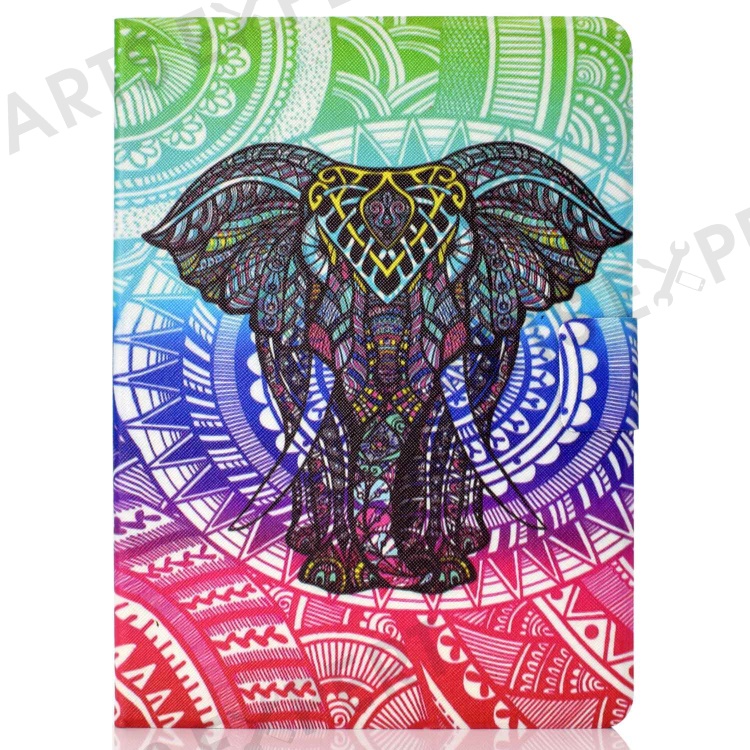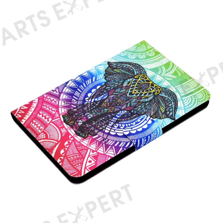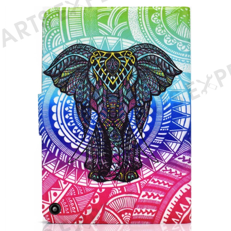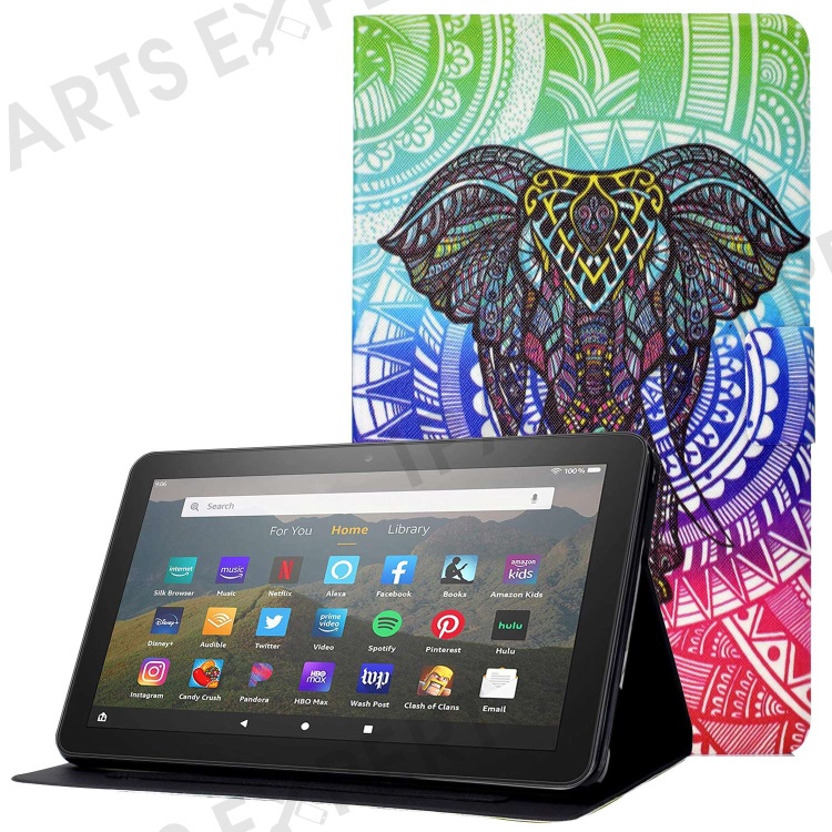 For Amazon Fire HD 8 (2020) Pattern Printing PU Leather Stand Case Card Slots Tablet Shockproof Protective Cover - Elephant