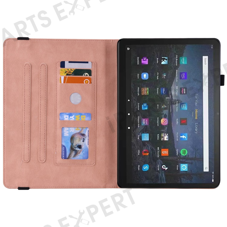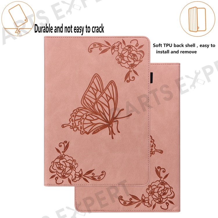 For Amazon Fire Max 11 PU Leather Tablet Case Imprinted Butterfly Flower Stand Flip Cover with Card Holder - Pink