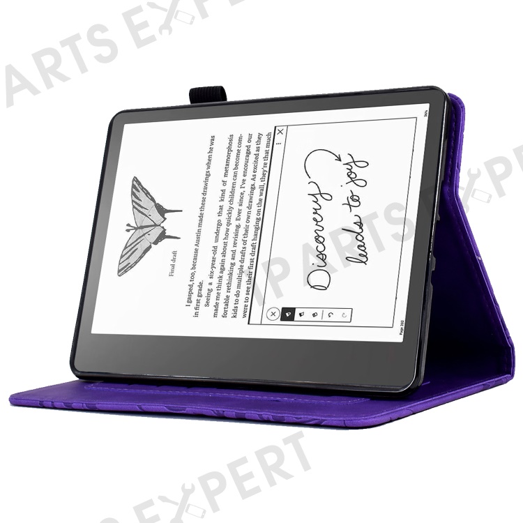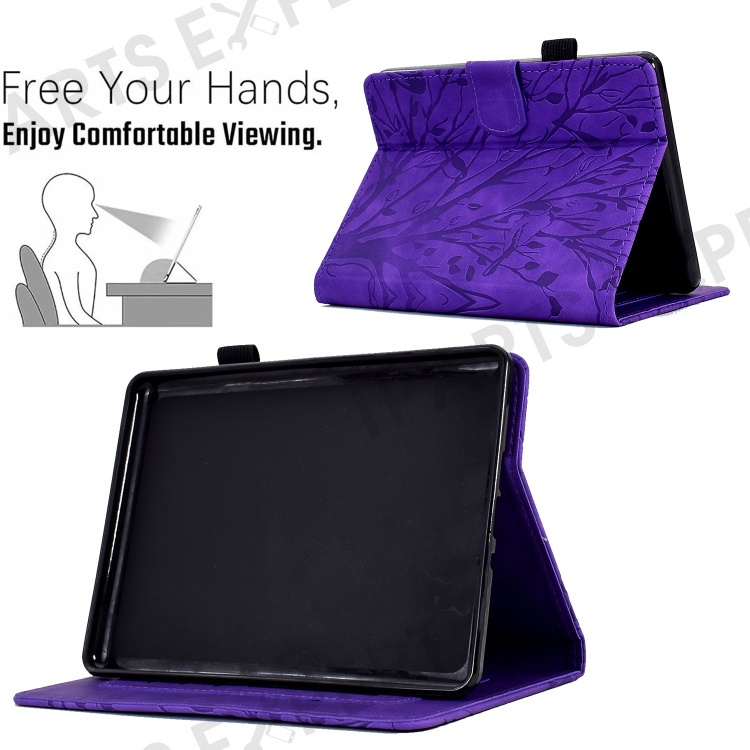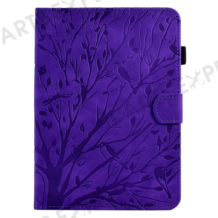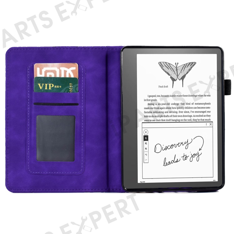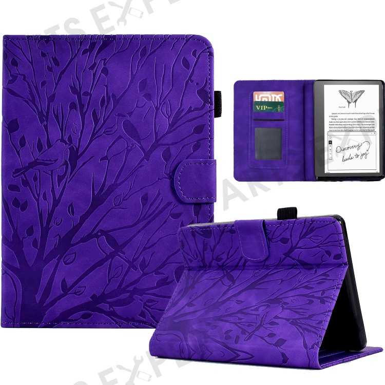 For Amazon Kindle 11th (2024) / 6'' (2022) Leather E-Reader Case Imprinted Tree Stand Card Holder Cover - Purple