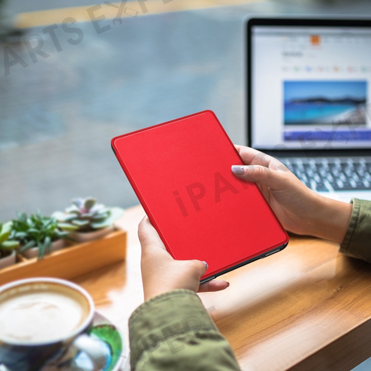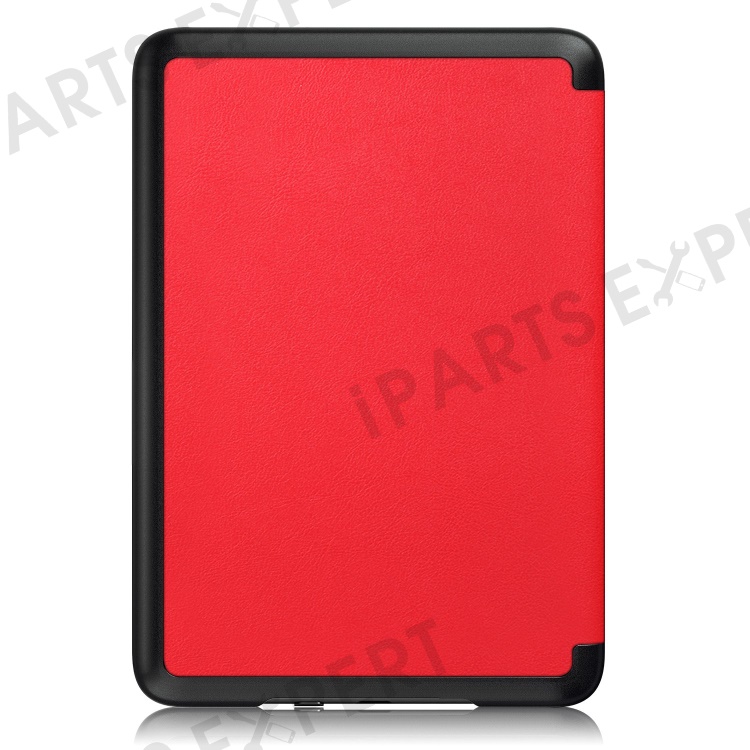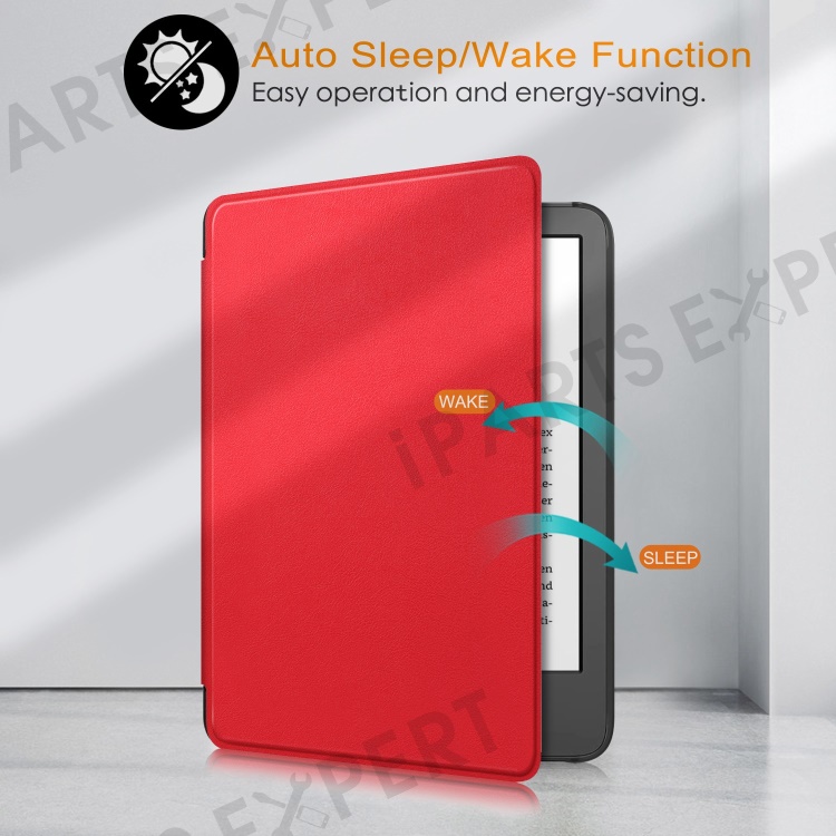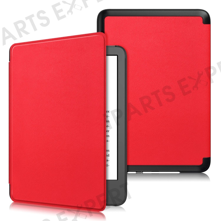 For Amazon Kindle 6" (2022) PU Leather Folio Case Auto Sleep / Wake Feature Solid Color Tablet Cover - Red