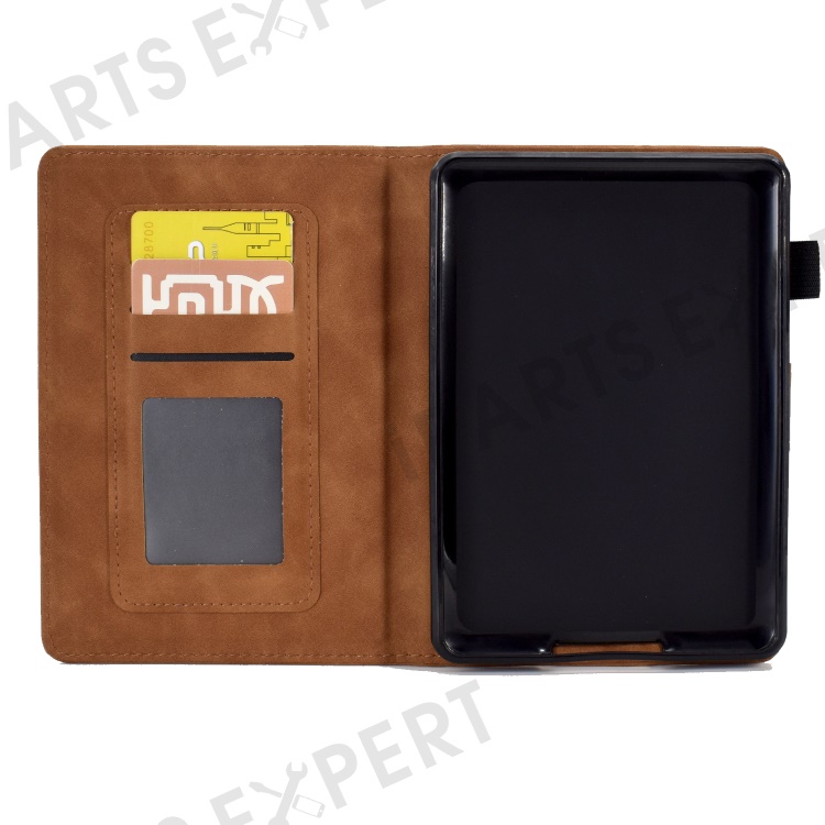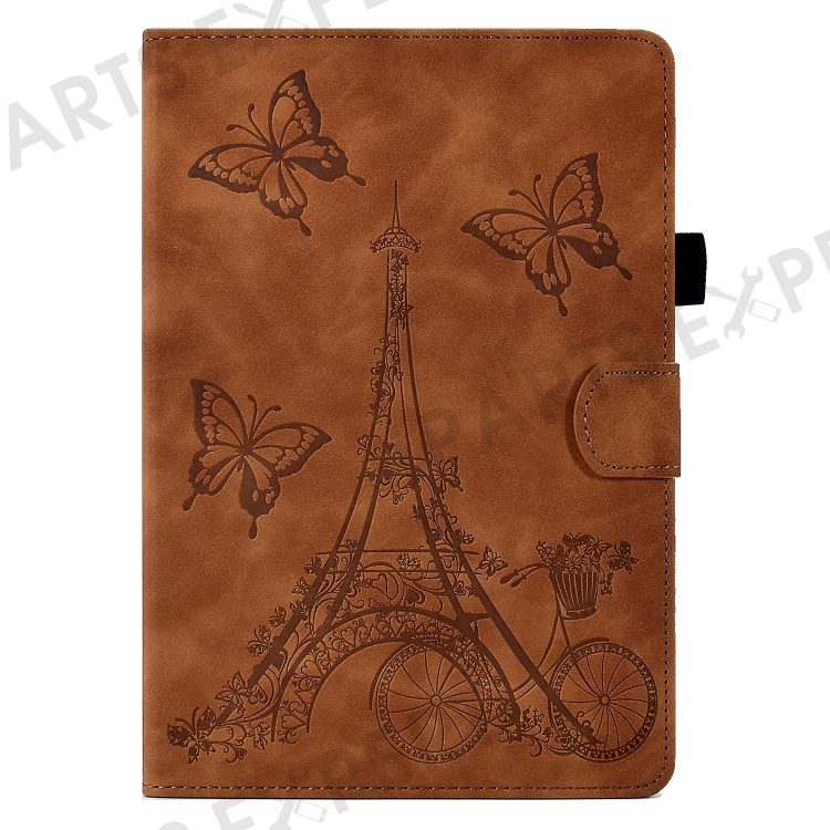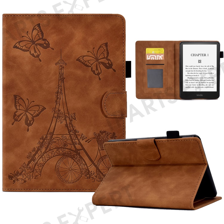 For Amazon Kindle Paperwhite 5 (2021) Tower Bike Butterfly Pattern Imprinted E-reader Case Microfiber Leather Card Holder Stand Case - Brown