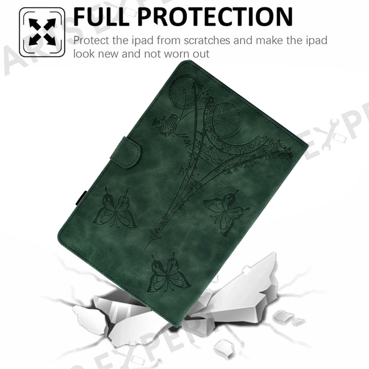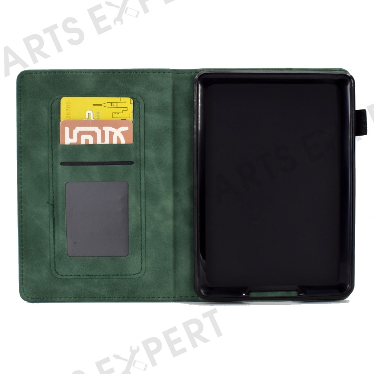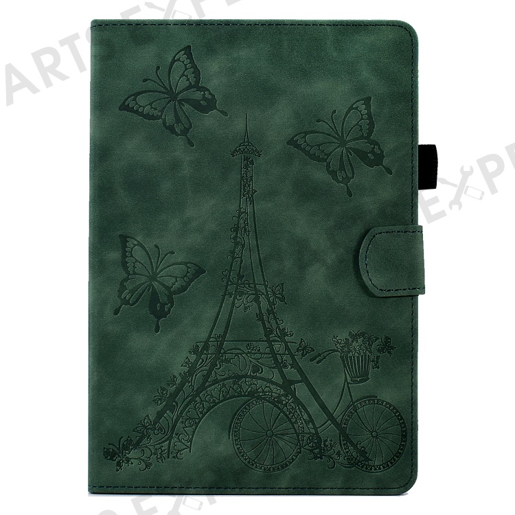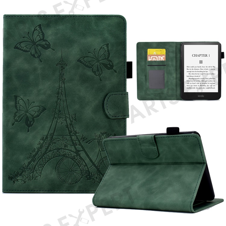 For Amazon Kindle Paperwhite 5 (2021) Tower Bike Butterfly Pattern Imprinted E-reader Case Microfiber Leather Card Holder Stand Case - Green