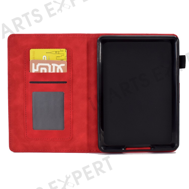 For Amazon Kindle Paperwhite 5 (2021) Tower Bike Butterfly Pattern Imprinted E-reader Case Microfiber Leather Card Holder Stand Case - Red