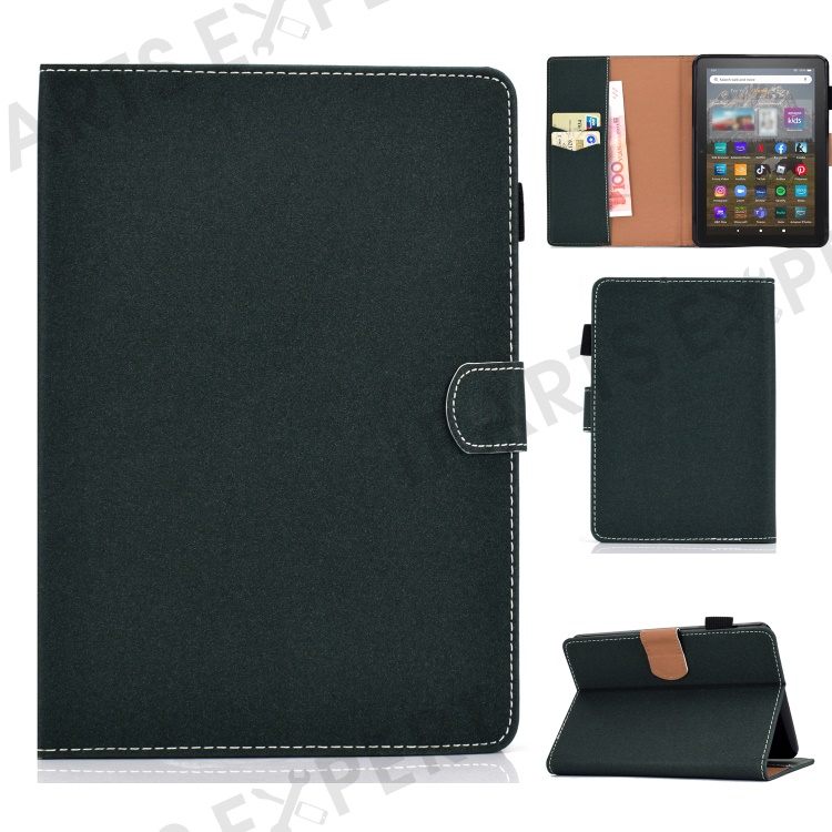 For Amazon Kindle Youth Edition 2022 PU Leather Stitching Line Tablet Case Card Slot Stand Folio Cover with Pencil Holder - Green