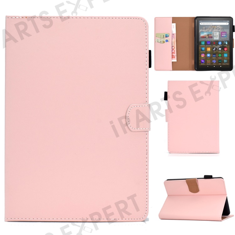 For Amazon Kindle Youth Edition 2022 PU Leather Stitching Line Tablet Case Card Slot Stand Folio Cover with Pencil Holder - Pink