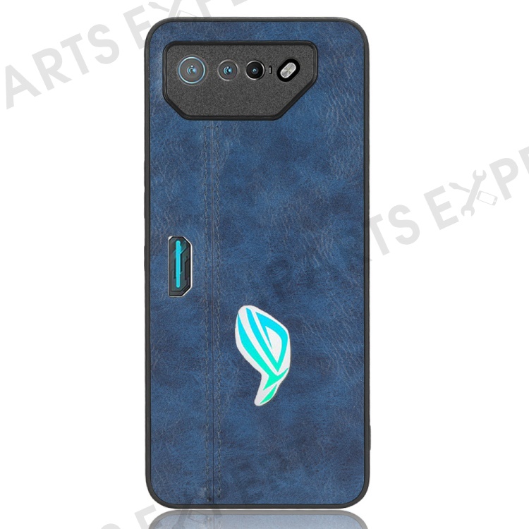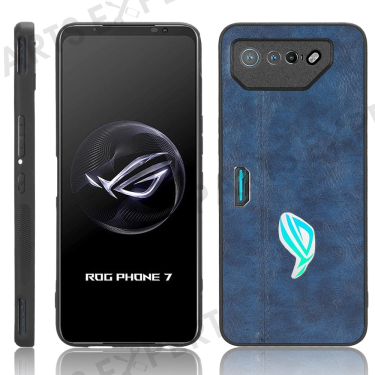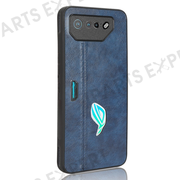 For Asus ROG Phone 7 5G Leather Coated TPU+PC Phone Case Cowhide Texture Anti-Scratch Cover - Blue