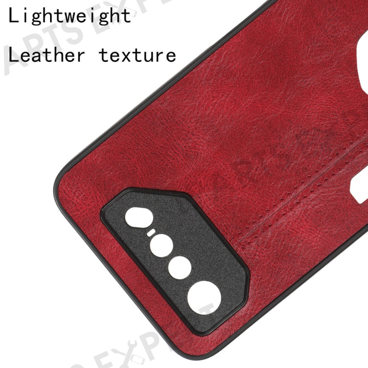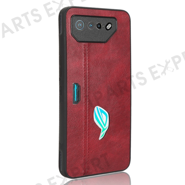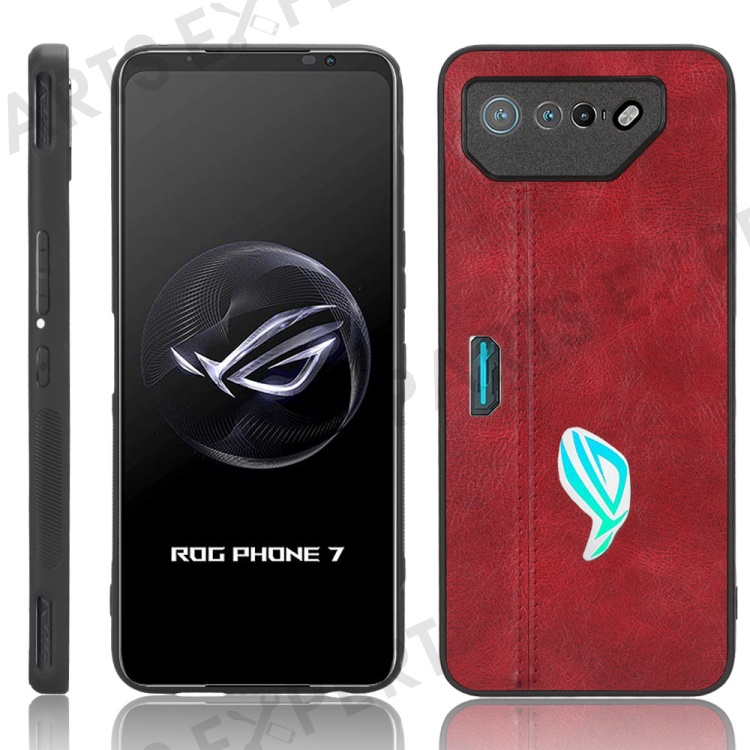 For Asus ROG Phone 7 5G Leather Coated TPU+PC Phone Case Cowhide Texture Anti-Scratch Cover - Red
