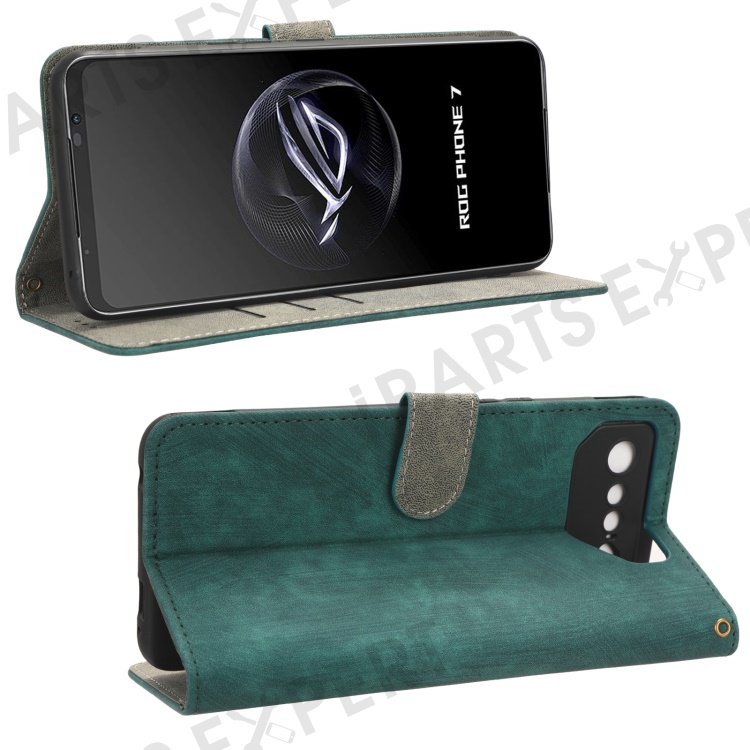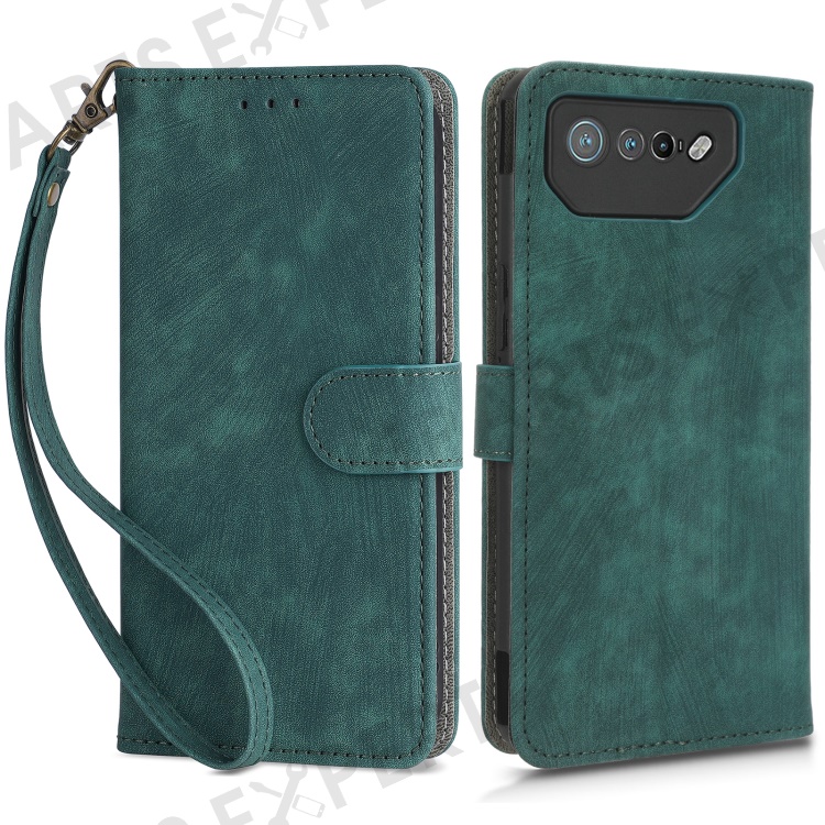 For Asus ROG Phone 7 5G Phone Wallet Case RFID Blocking Stand Phone Cover with Strap - Green