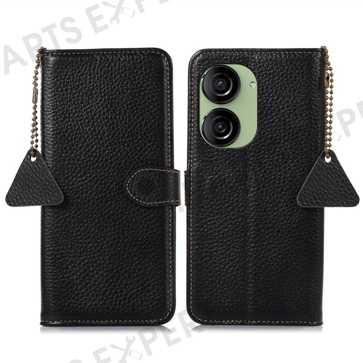 For Asus Zenfone 10 5G / 9 5G Genuine Cow Leather Cover RFID Blocking Wallet Stand Phone Case - Black