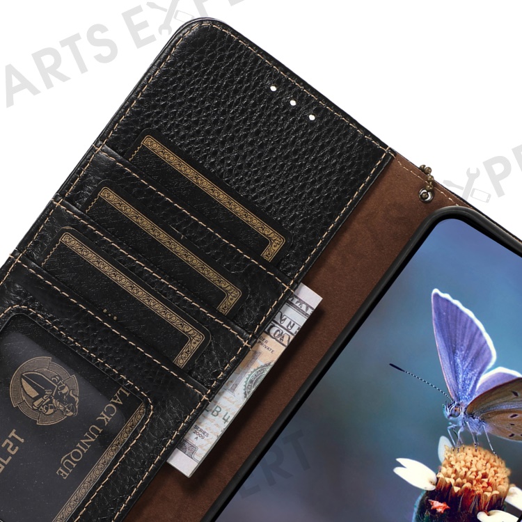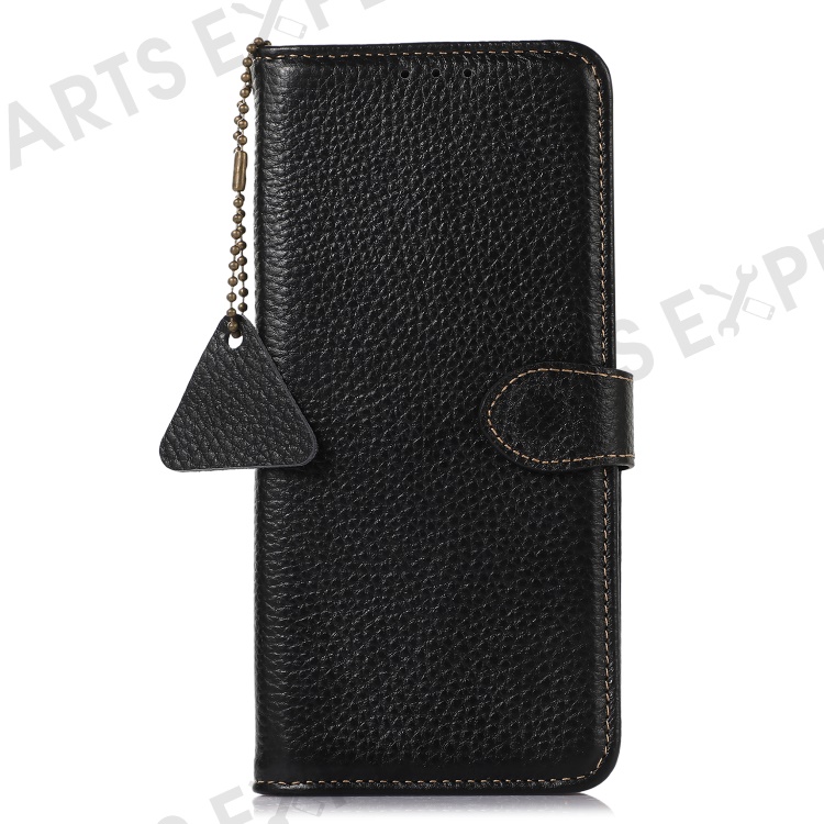 - 【Premium Material】 Made of premium genuine cow leather with delicate litchi texture and TPU offers a good hand feeling, and comes with a small chain decoration