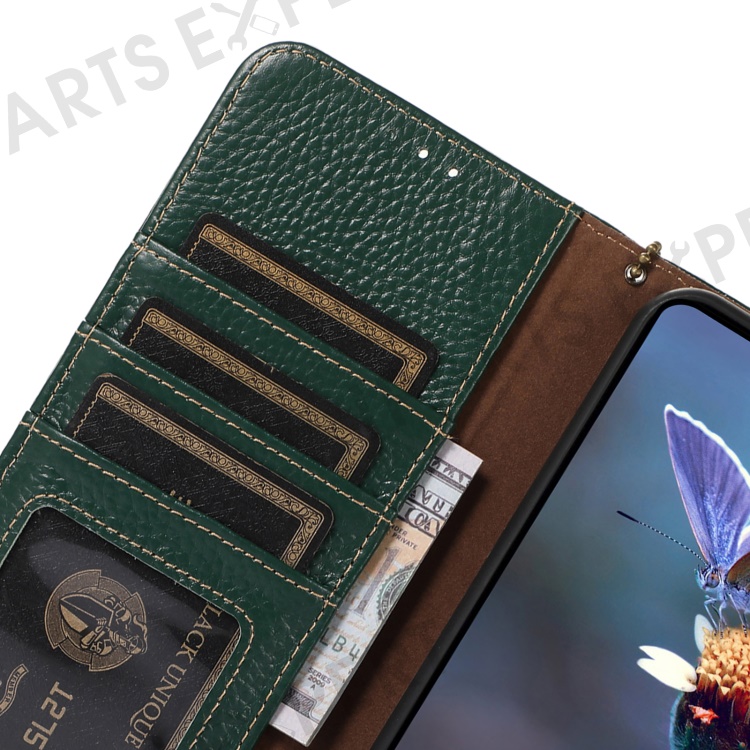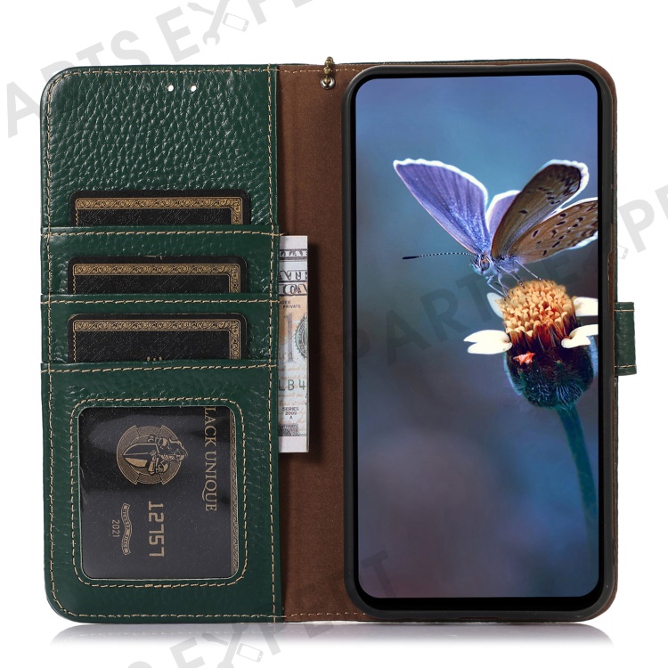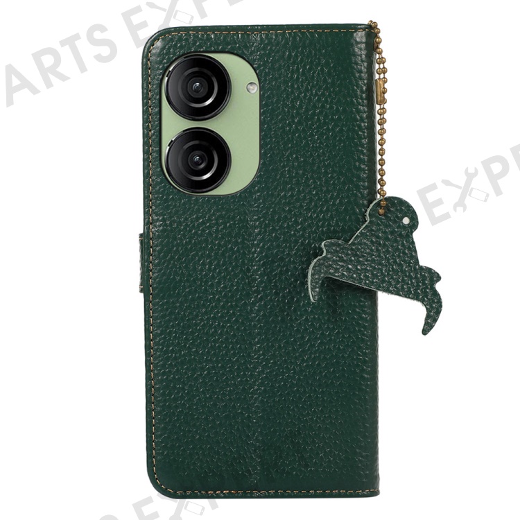 For Asus Zenfone 10 5G / 9 5G Genuine Cow Leather Cover RFID Blocking Wallet Stand Phone Case - Green
